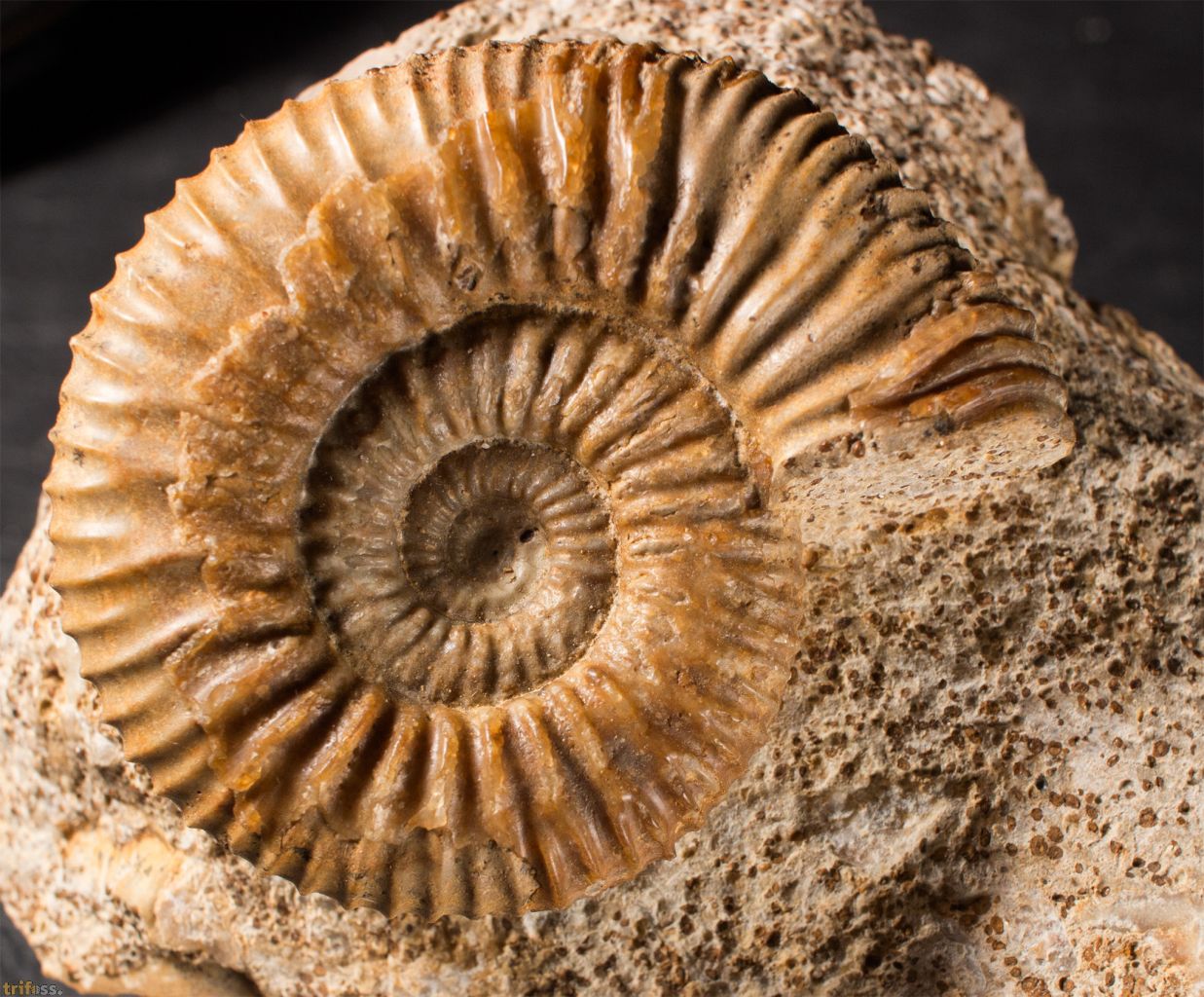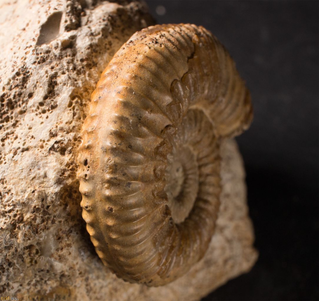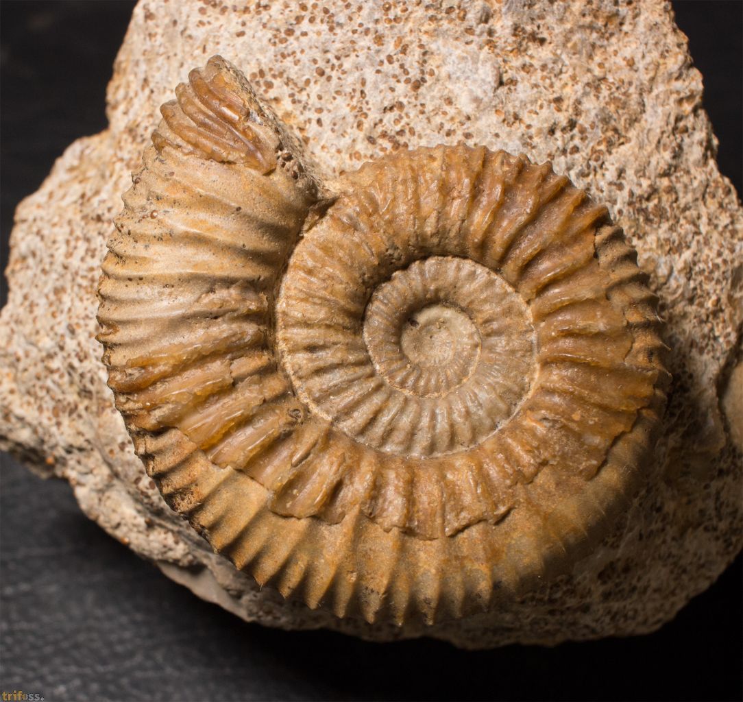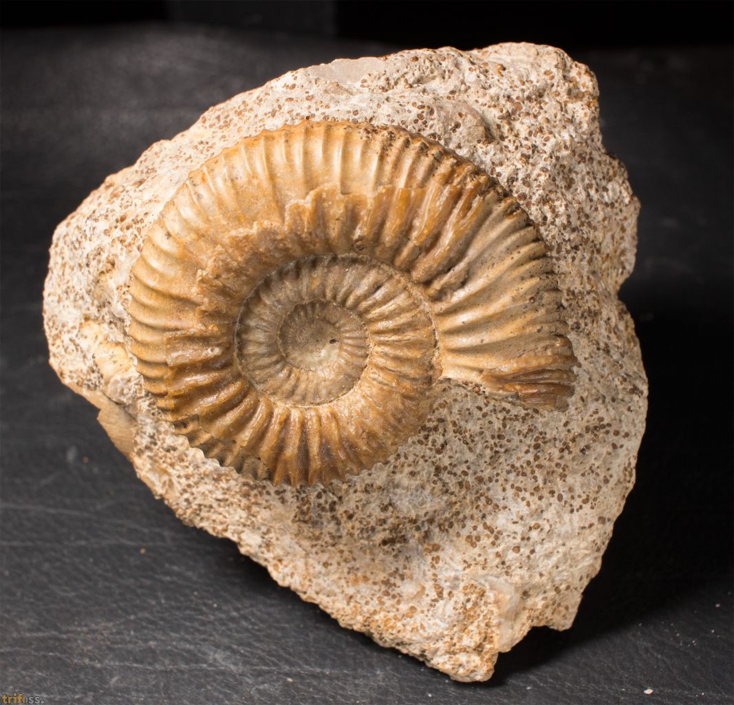 Dies ist ein Ammonit der Art Garantiana wetzeli als schönes Matrix - Stück. Der Ammonit misst etwa 58 mm.
