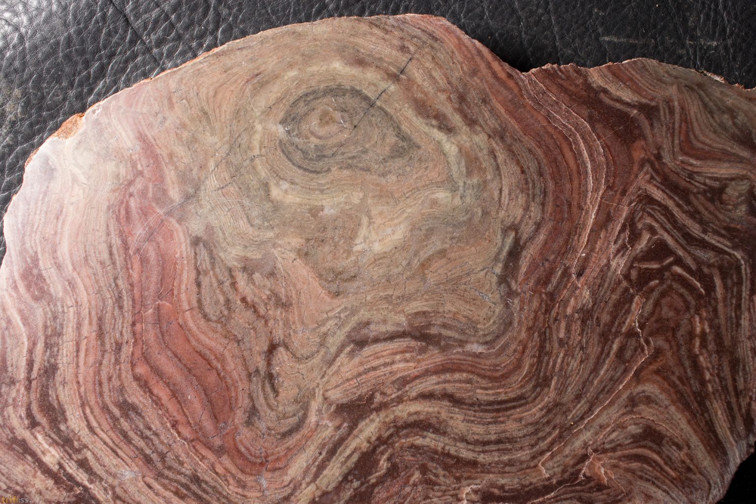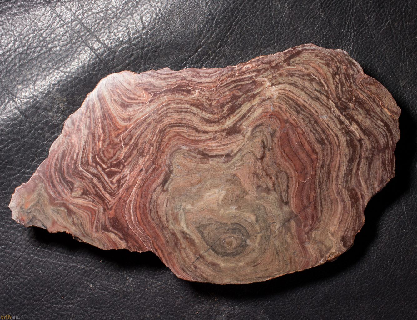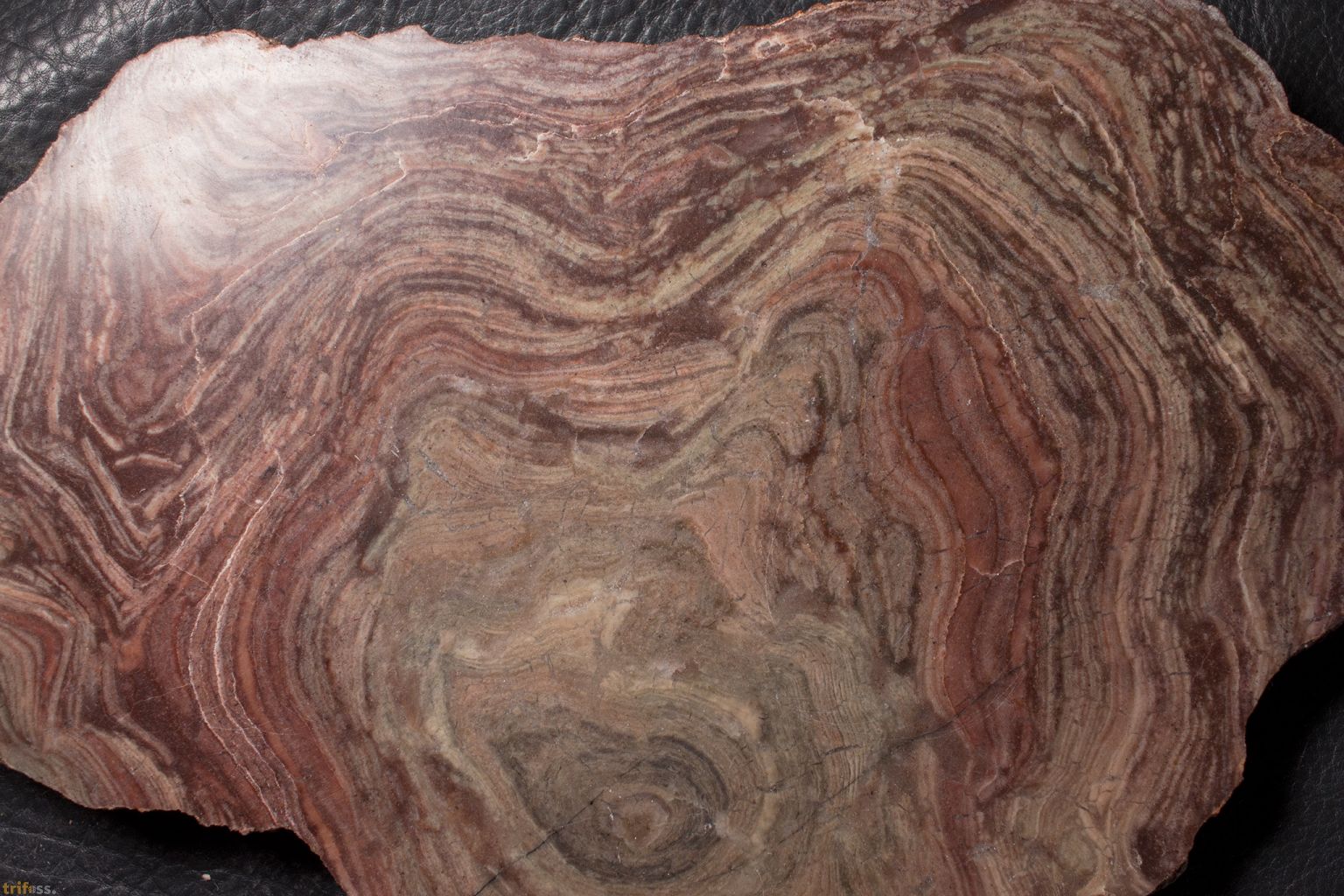 Dies ist ein sehr schöner Anschliff eines Süsswasser - Stromatolithen der Art Conophyton amantourartensis aus dem Ediacarium von Marokko.