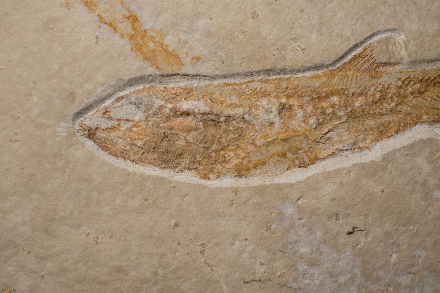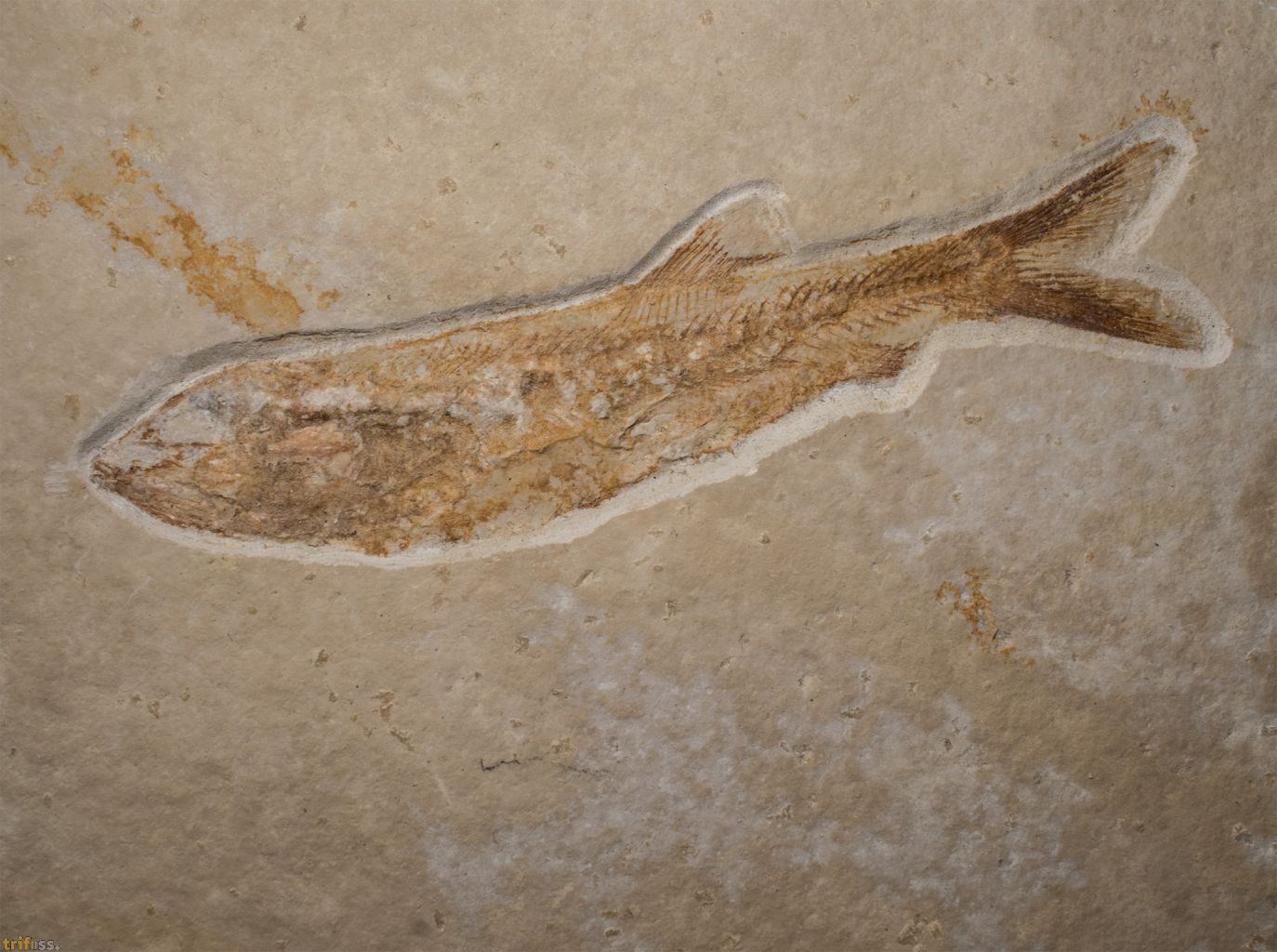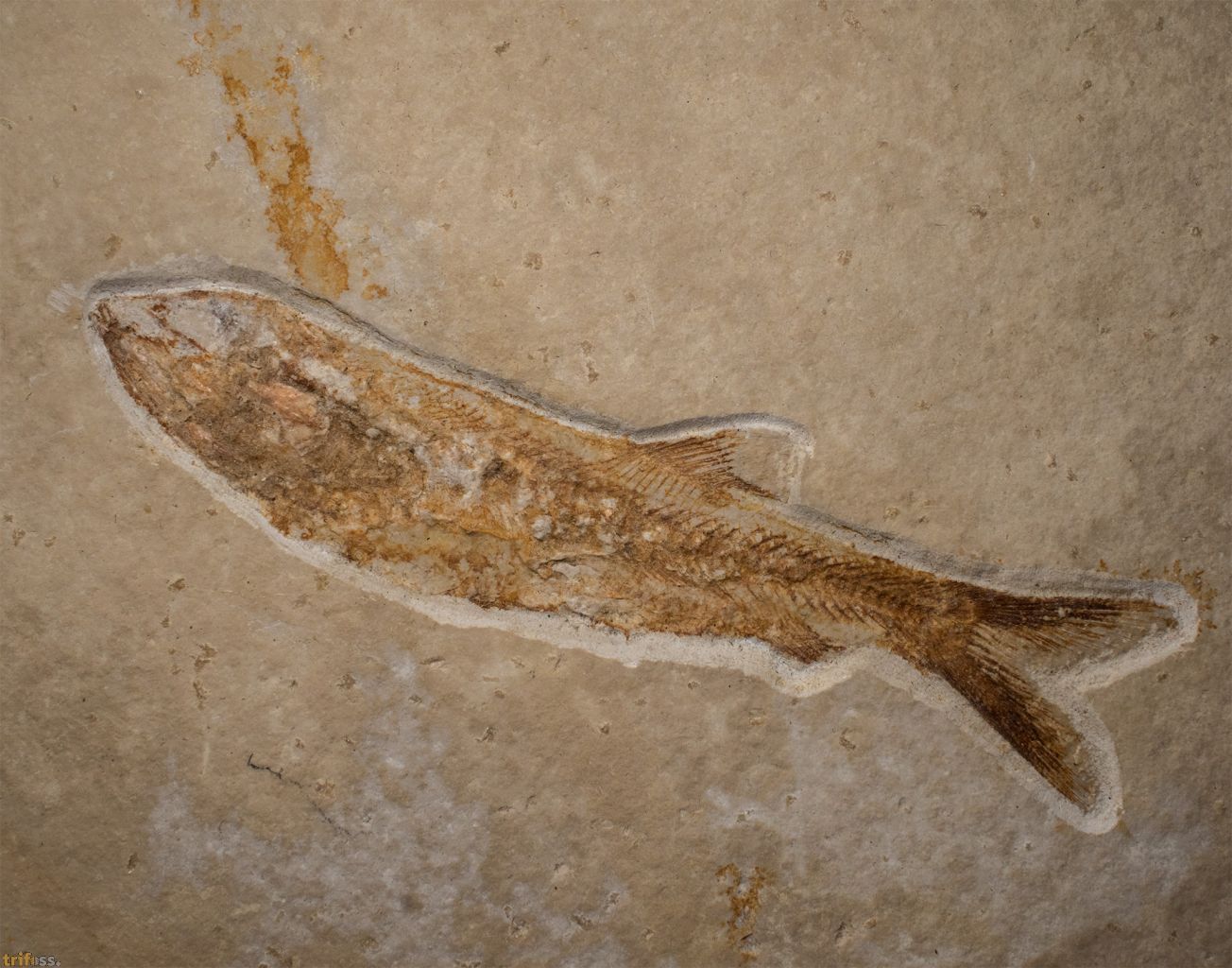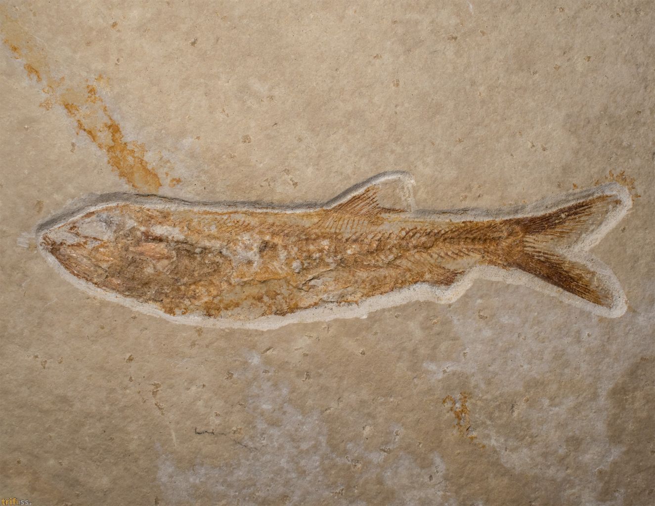 Dies ist ein relativ seltener fossiler Solnhofen - Fisch der Art Anaethalion angustus aus dem Plattenkalk von Eichstätt. Der Anaethalion selber ist etwa 97 mm lang.