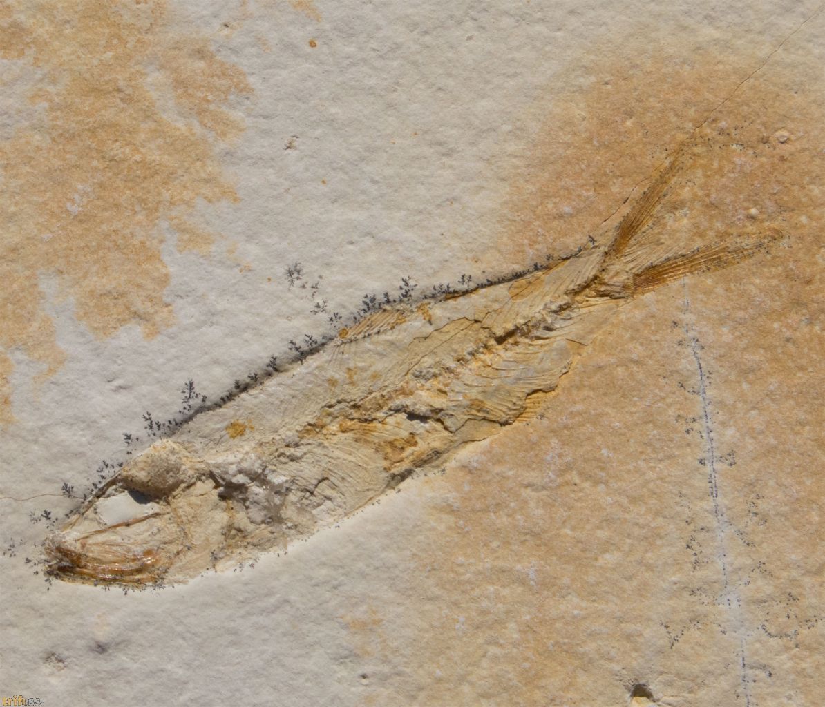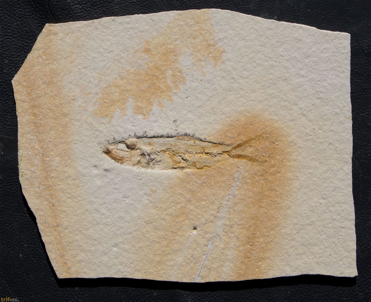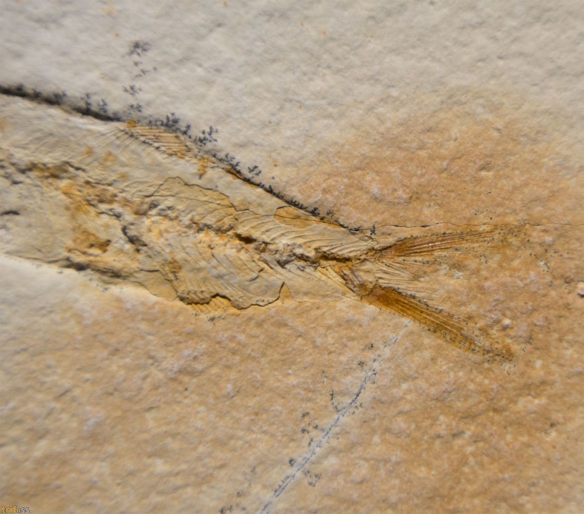 Dies ist ein fossiler Solnhofen - Fisch der Art Ascalabos voithi aus Eichstätt.Der fossile Fisch selber misst etwa 109 mm in der Länge.