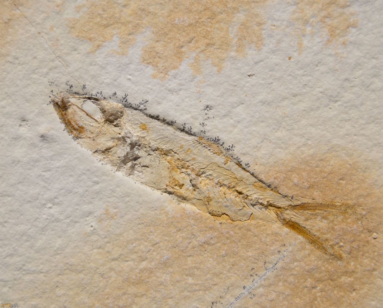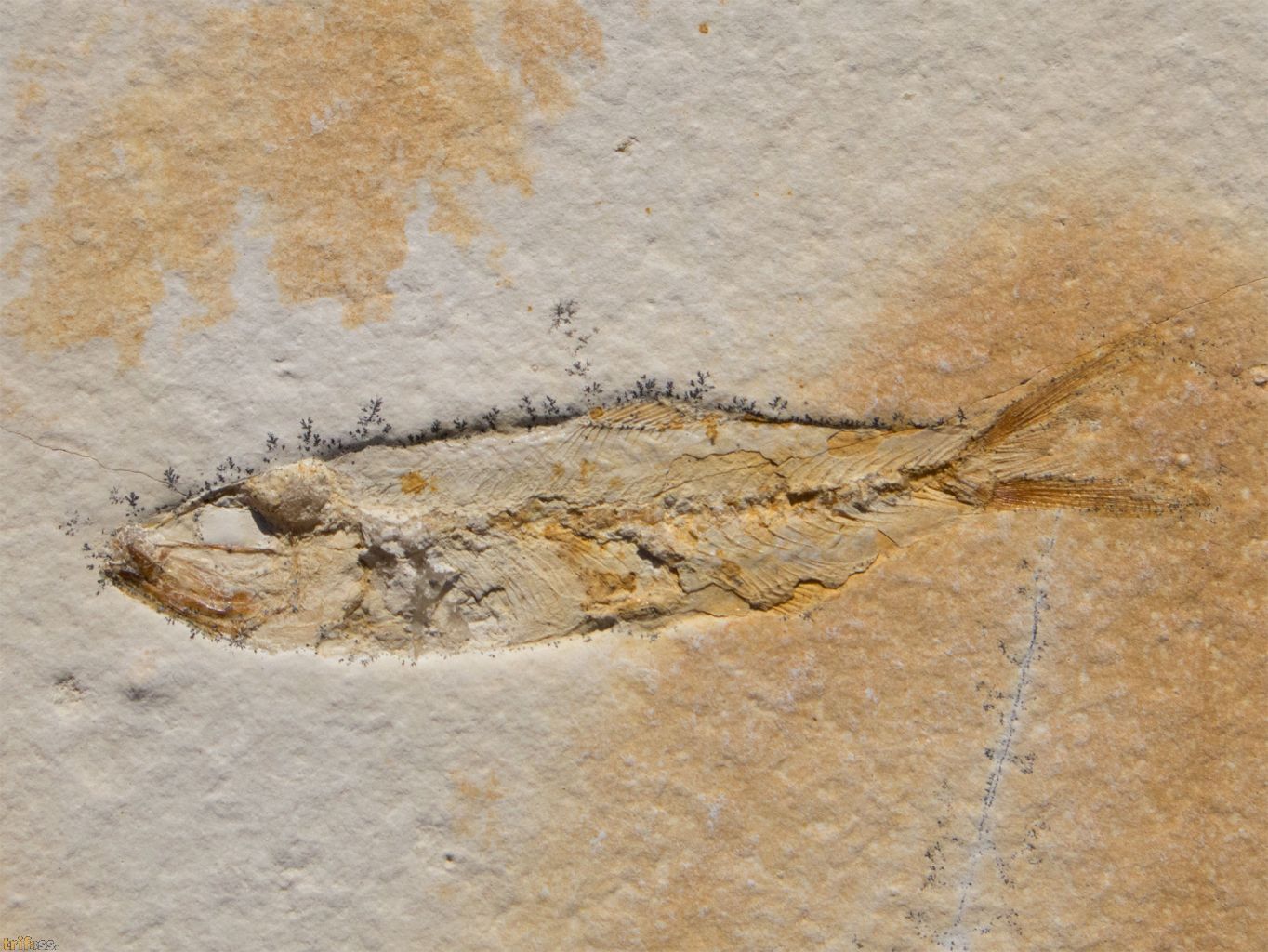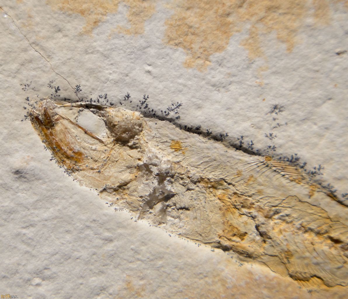 Dies ist ein fossiler Solnhofen - Fisch der Art Ascalabos voithi aus Eichstätt.Der fossile Fisch selber misst etwa 109 mm in der Länge.