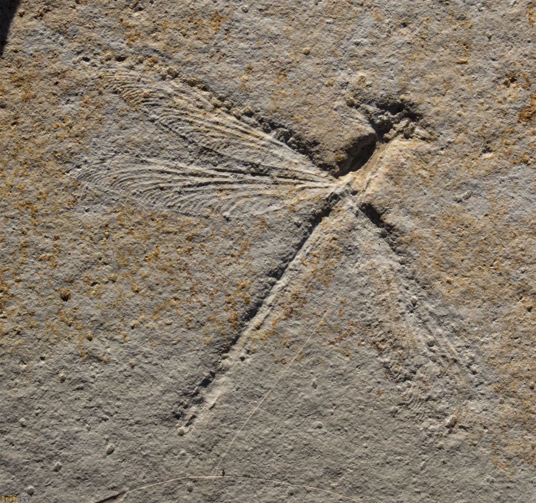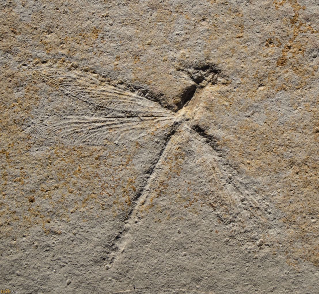Bei dieser Solnhofen Libelle handelt es sich um ein detailreiches Exemplar der Art Stenophlebia latreilli. Die fossile Libelle hat eine Spannweite von etwa 110 Millimetern, gemessen in der Lage, in der das Exemplar eingebettet ist.