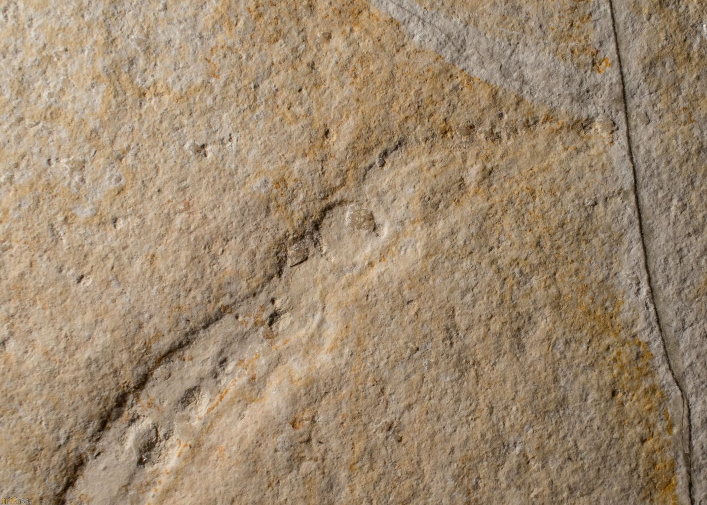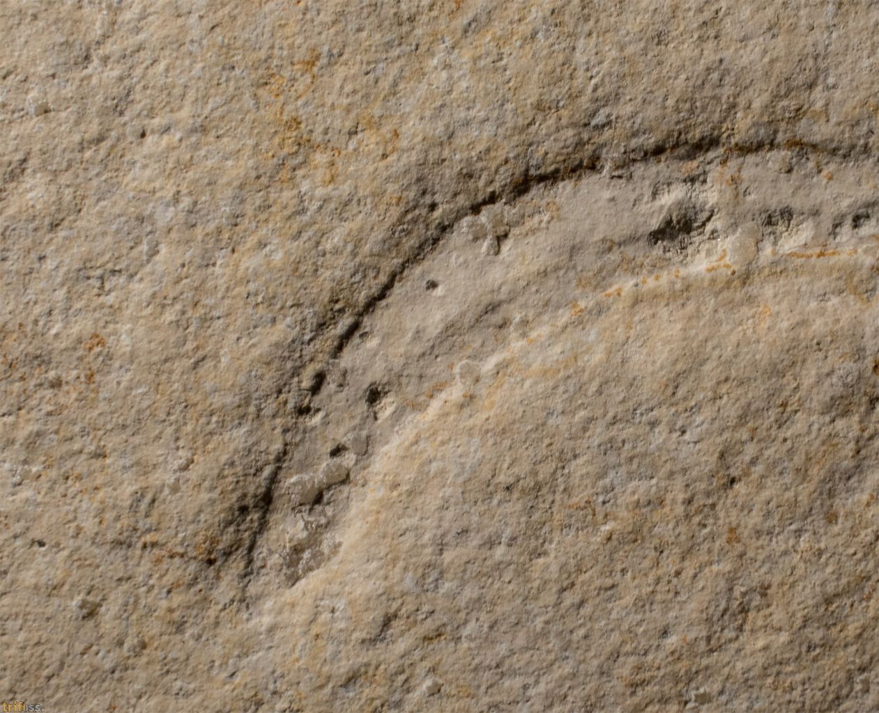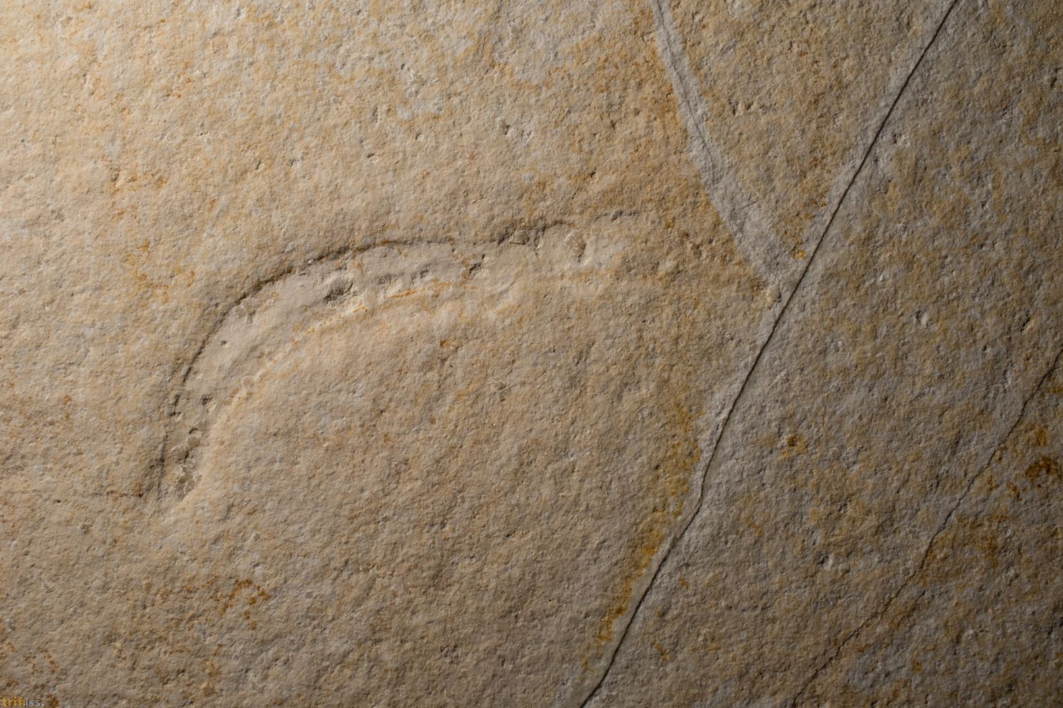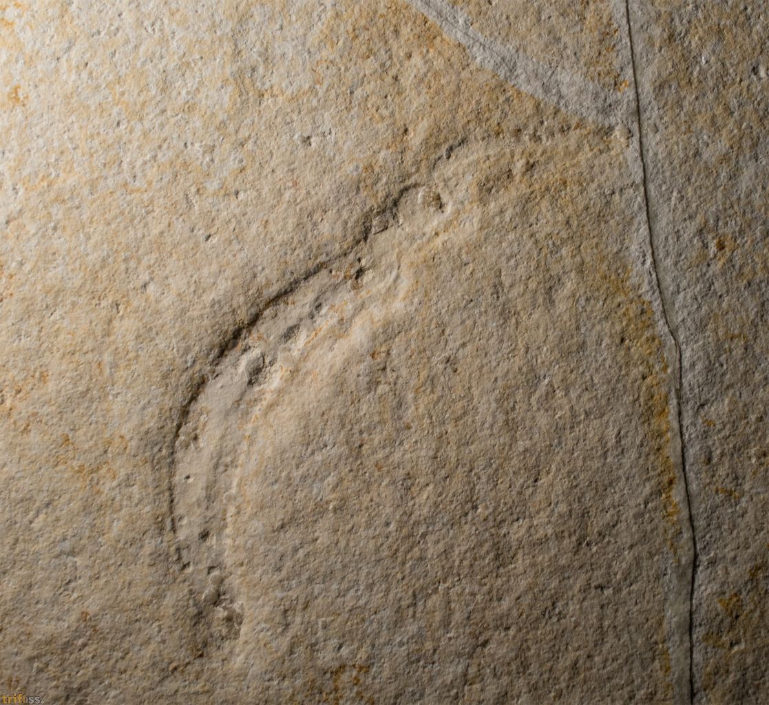 Hier ist ein seltener fossiler Tintenfisch der Art Plesioteuthis prisca mit Fangarmen.Es handelt sich hier um eine Juveniles Exemplar mit einer Körperlänge (gestreckt) von etwa 112 mm.Als Besonderheit sind bei diesem Exemplar die Fangarme sowie Auge erhalten.