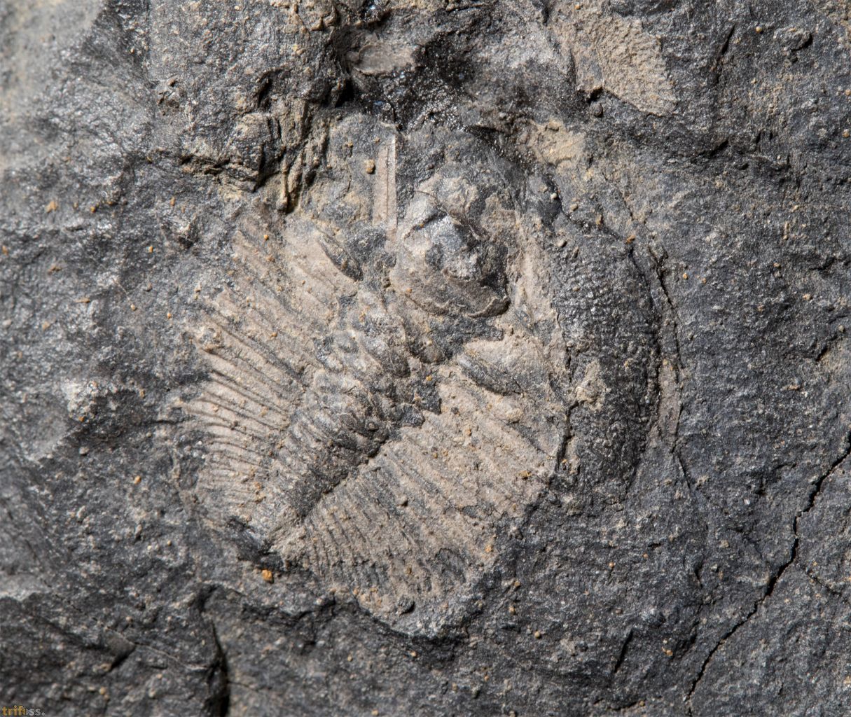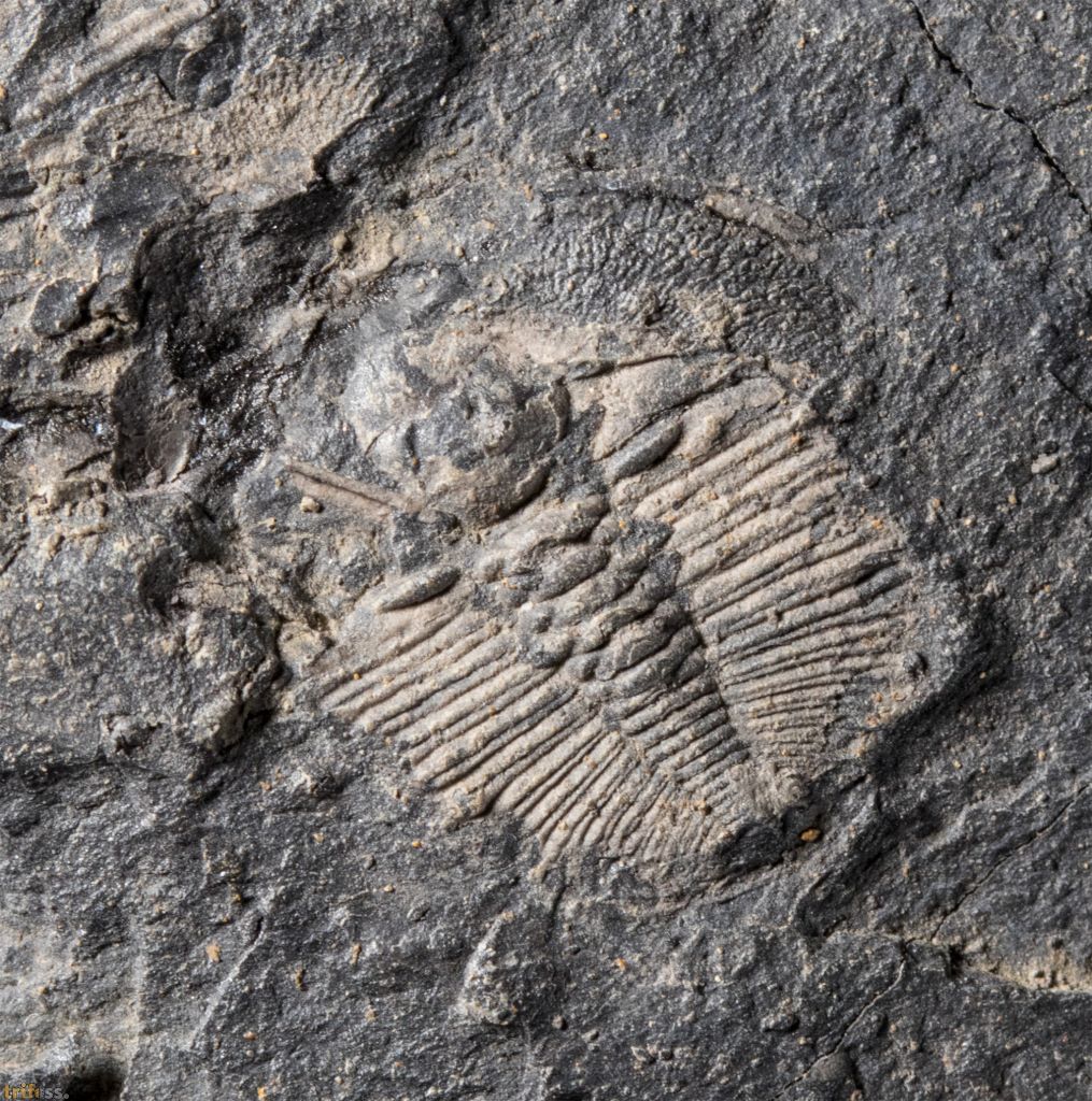 Der Trilobit ist etwa 13 mm lang.