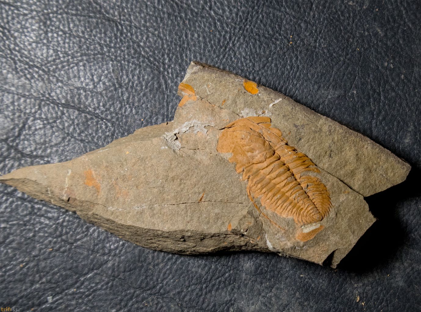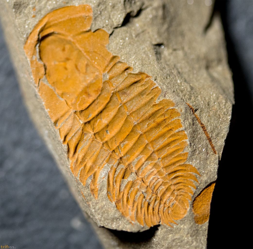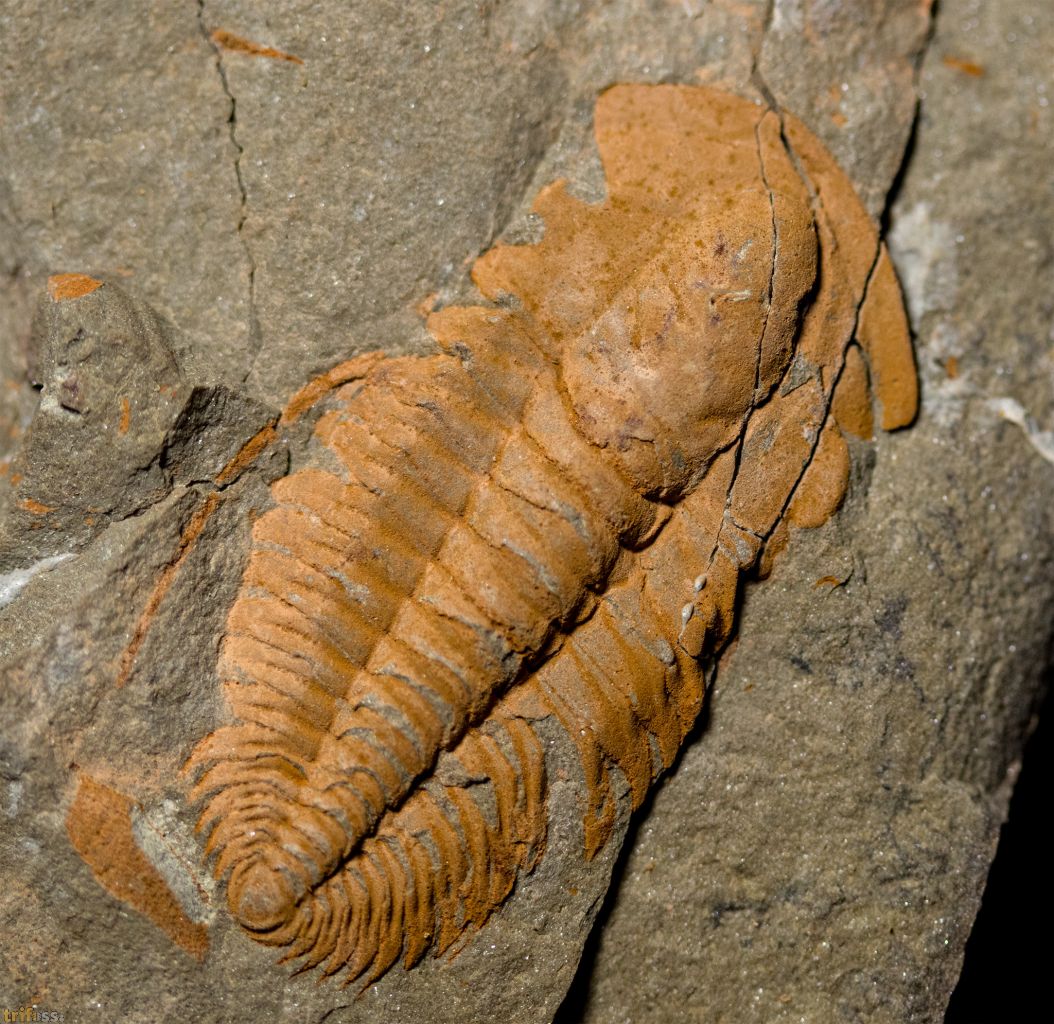 Hier ist ein schöner Beleg eines Hamatolenus vincenti aus der Jbel Wawrmast Fm., deutlich erkennbar ist die markante Macropleure.