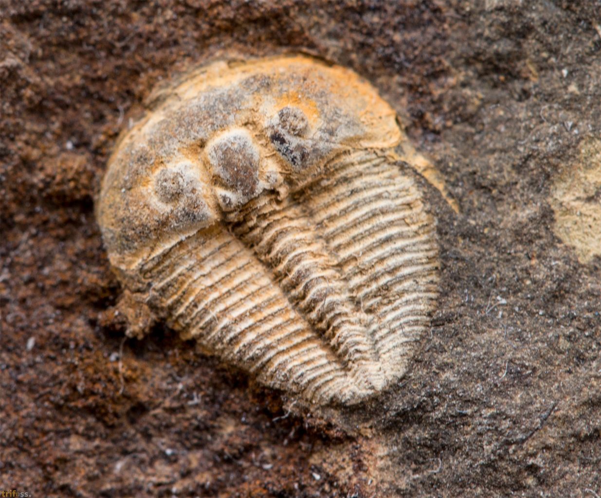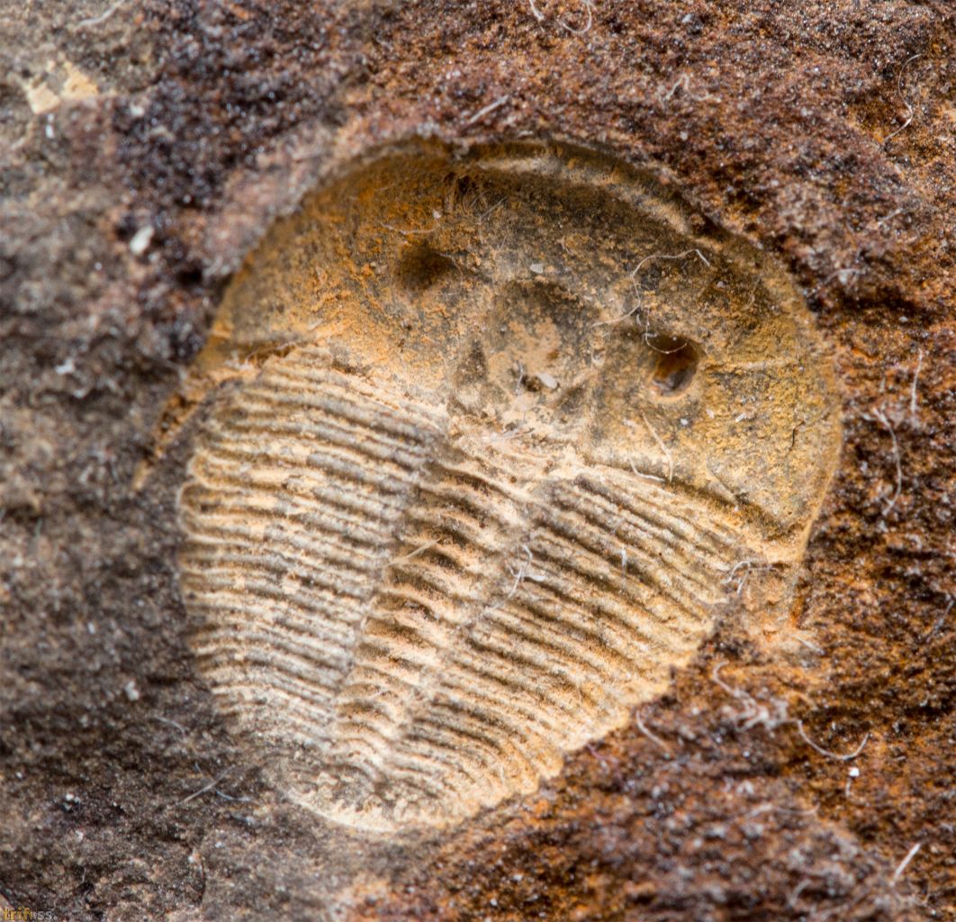 Hier ist ein klassischer Trilobit aus Tschechien der Art Aulacopleura konincki in einer sehr guten Erhaltung. Der Trilobit selber misst etwa 8 mm in der länge. Dieses Stück kommt mir der Positiv- sowie Negativseite.