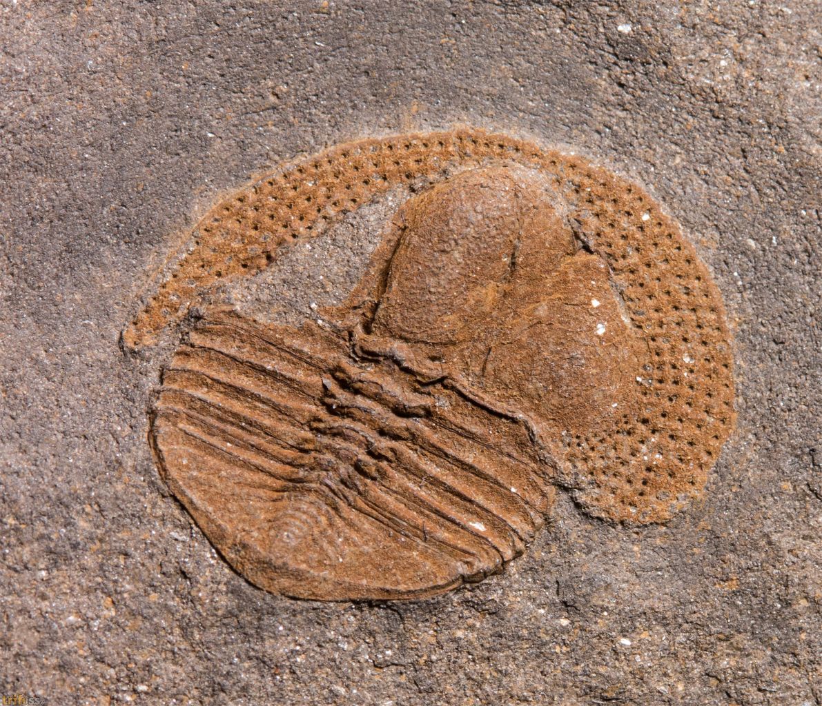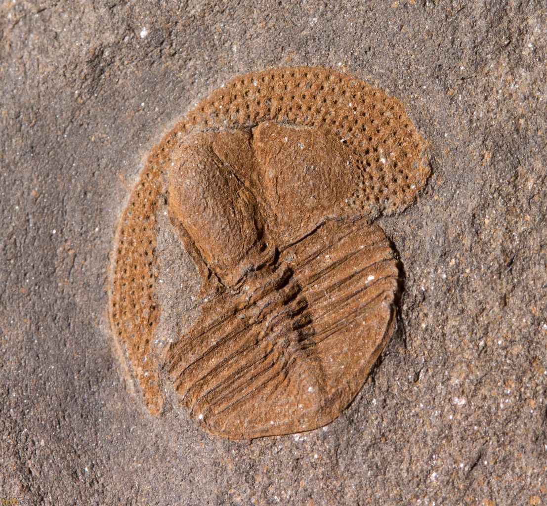 Dies ist ein detailreicher Beleg eines Tschechischer Trilobiten der Art Deanaspis goldfussiausi.