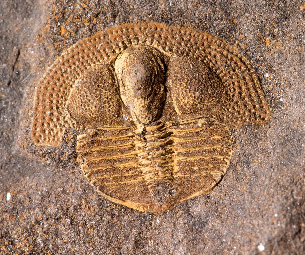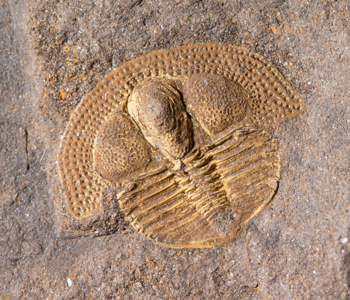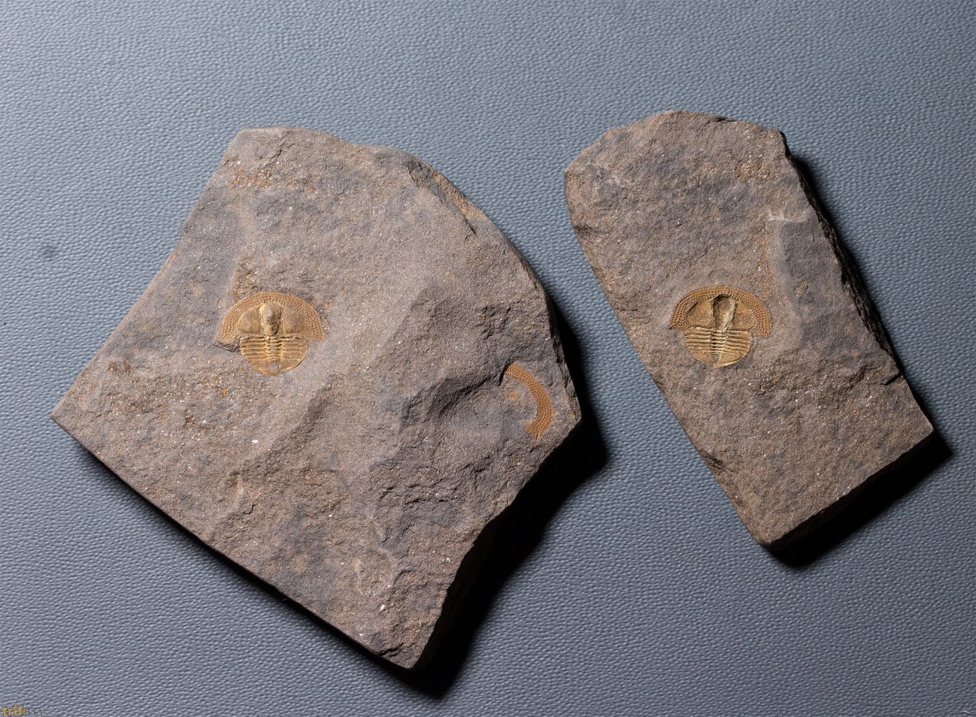 Hier ist ein ausgezeichnetes Exemplar eines Deanaspis goldfussi aus dem Ordovizium von Prag. Das Stück kommt mit Positiv- sowie Negativseite. Der Deanaspis zeigt eine sehr detailreiche Erhaltung und ist etwa 12 mm lang.