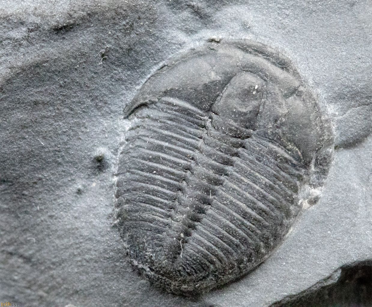 Dies ist ein Utah - Trilobit der Art Elrathia kingi mit etwa 14 mm Länge aus dem Wheeler Shale.