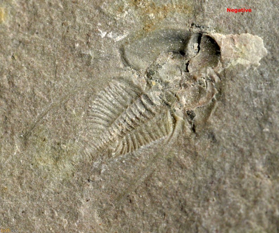 Hier ist ein äußerst seltener Nephrolenellus geniculatus mit erhaltenem Opistothorax. Das Stück kommt inklusive der Negativseite. | |||