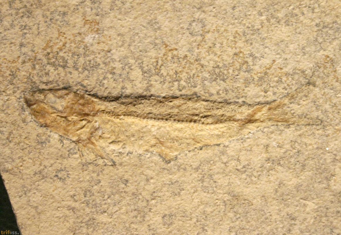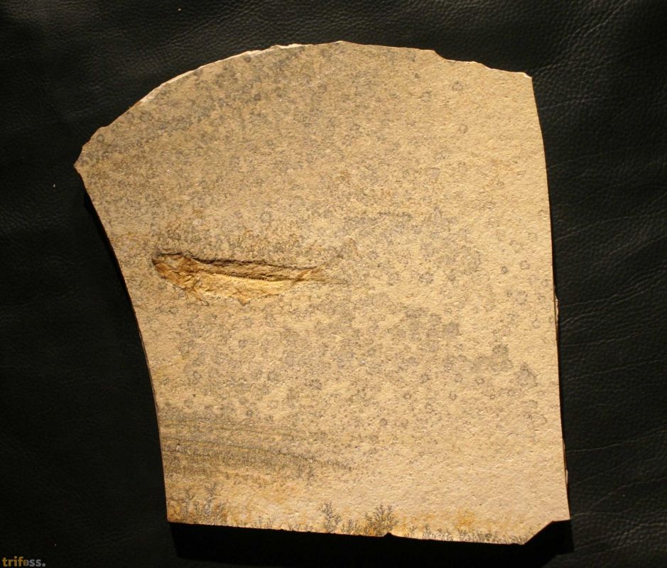 Hier ist ein schönes Exemplar dieser typischen Knochenfisch-Art aus dem Plattenkalk von Solnhofen. Der Fisch ist etwa 79 mm lang. | |||