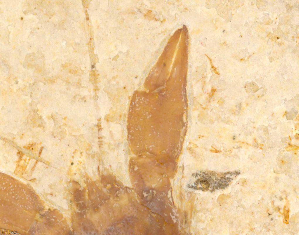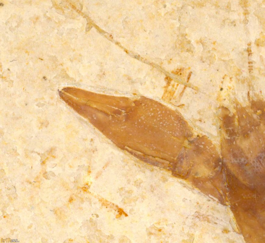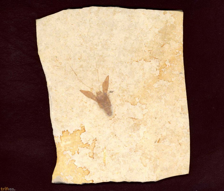 Ausgezeichnetes Exemplar einer Eryma aus Zandt. Der Panzerkrebs überzeugt durch einen hervorragenden Kontrast sowie einer sehr hohen Detailtiefe. Dieses Exemplar misst ohne die Antennen etwa 33 mm. Die Platte ist ungebrochen. | |||