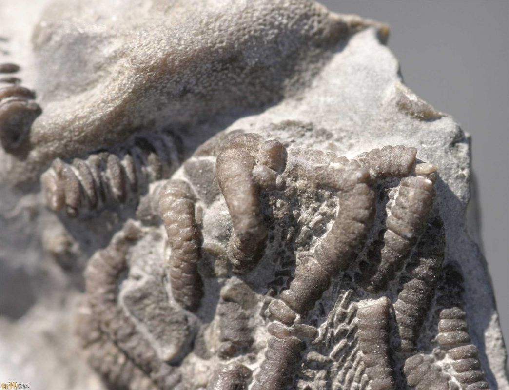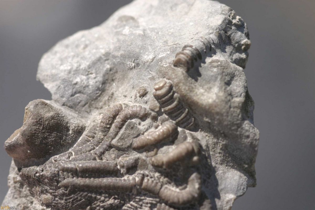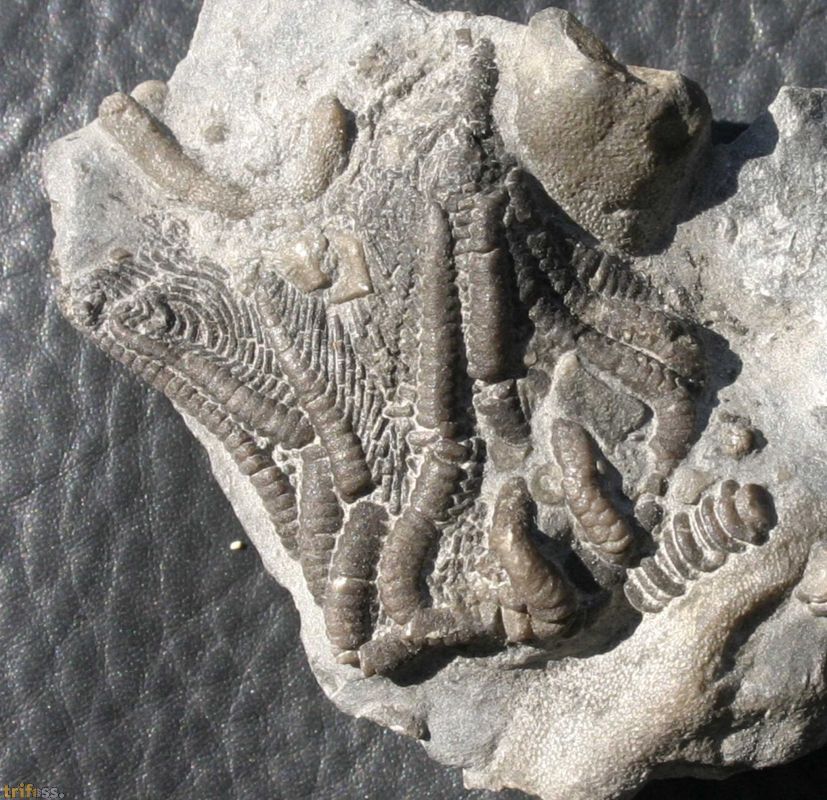 Hier ist eine wunderbare Seelilie aus Dudley. Diese Crinoide hat die Arme der Krone teilweise ausgebreitet wodurch die feinen Pinnulae besonders gut zur Geltung kommen. Die Krone ohne Stiel ist etwa 27 mm lang. Crinoiden aus Dudley sind große Raritäten besonders, wenn sie wie dieses Exemplar den Nodular Beds entstammen. Die Nodular Beds sind die Riffkalke in Wrens Nest, welche nicht für den Abbau geeignet waren. Wie auf der Abbildung zu sehen, sind dies heute auch die einzigen Kalksteine, welche noch aufgeschlossen sind. In ihnen sind Korallen und Bryozoen & Brachiopoden recht häufig, wie es eben typisch ist für ein Riff aus dem Silur. Jedoch sind leider alle anderen Fossilien selten vertreten. Die am besten und körperlichsten erhaltenen Seelilen von Dudly kommen jedoch trotzdem aus den Nodular Beds. Heute ist die Lokalität Wrens Nest streng geschützt, es darf nur loses Material aufgelesen werden, daher sind Neufunde von dieser klassischen Lokalität der Paläontologie kaum zu erwarten. | |||
