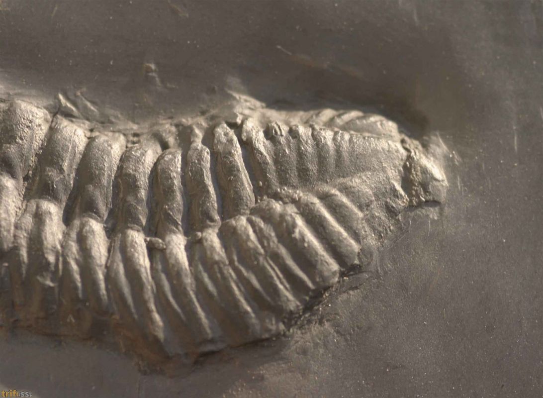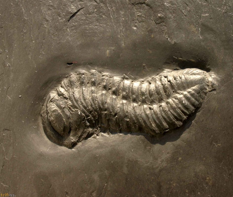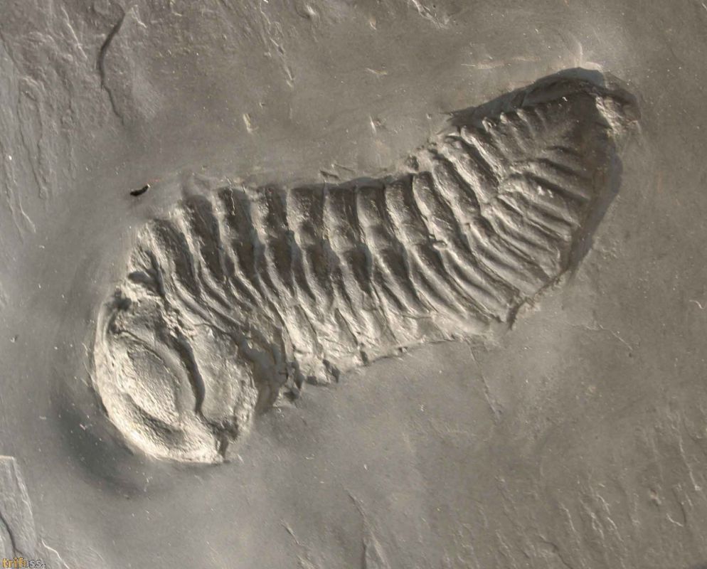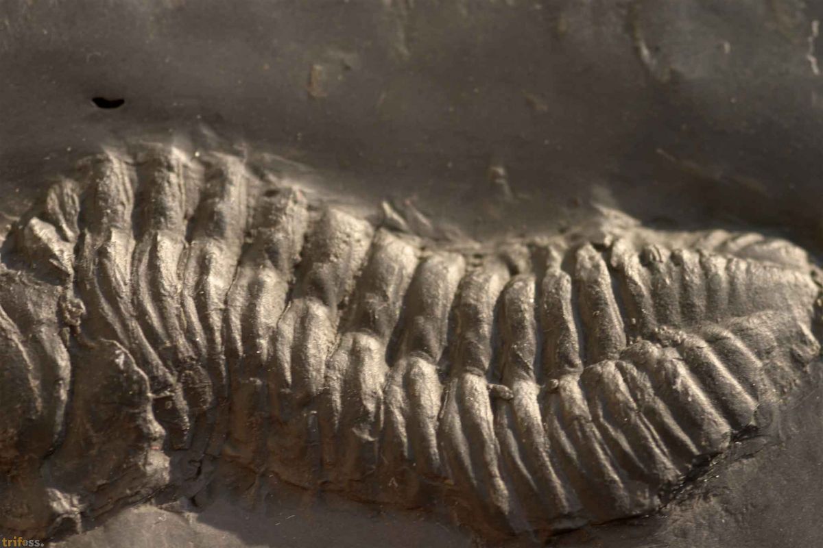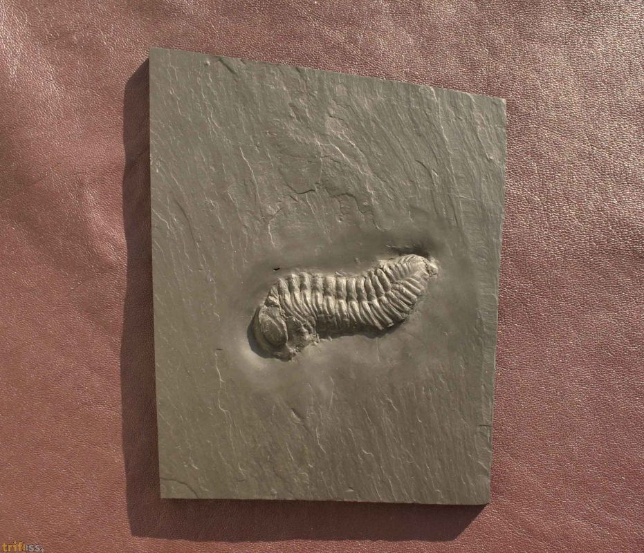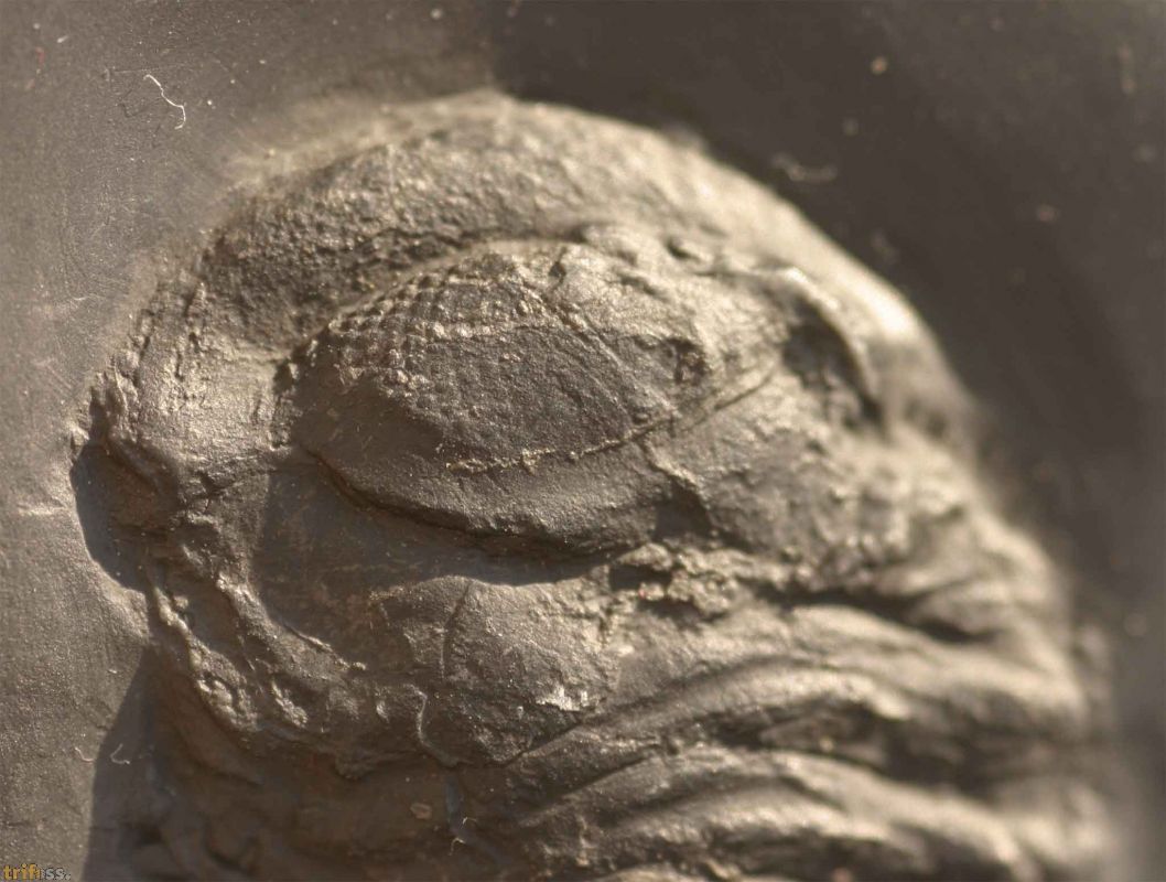 Zudem bietet der Trilobit eine gute Erhaltung, die einzelinsen im Schizochroalen Fassettenauge sind gut sichtbar.
