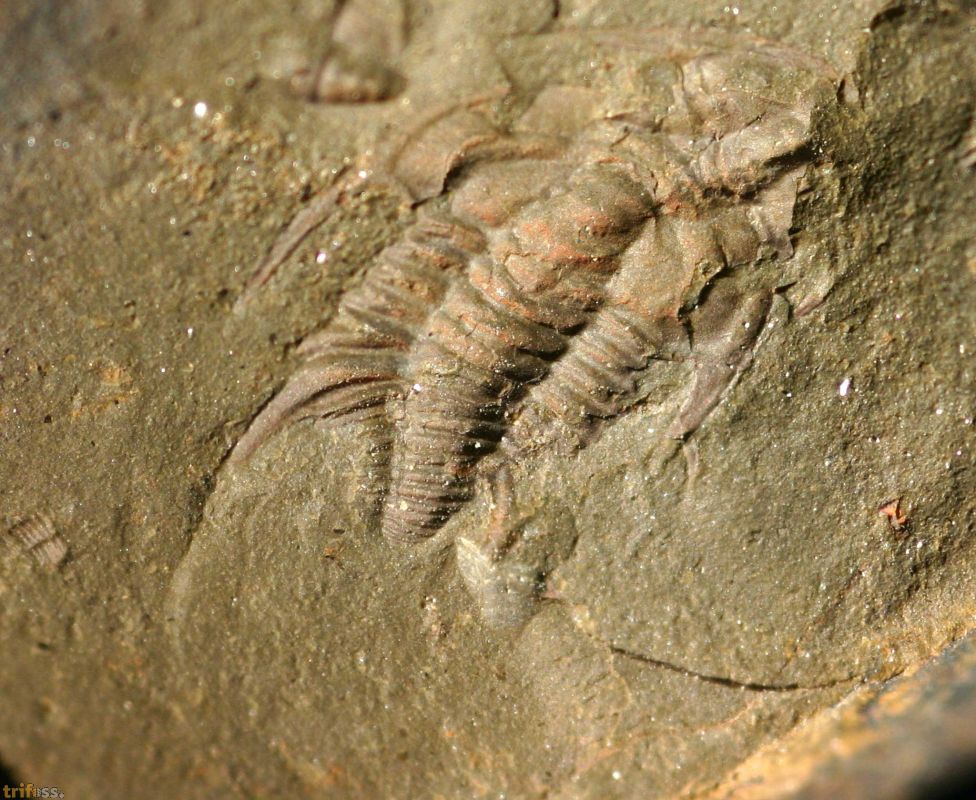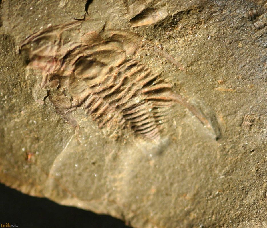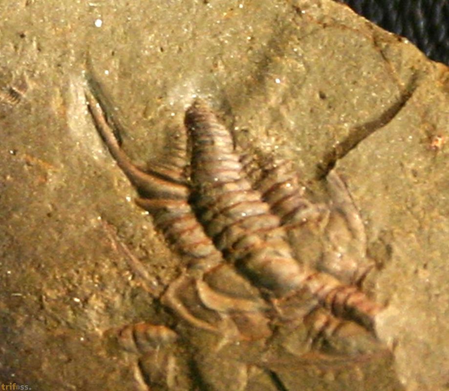 Hier ist ein seltener Trilobit der Art Balcoracania dailyi  aus dem unteren Kambrium von der Emu - Bay in Austalien. Mit etwa 14 mm weist der Trilobit eine gute Größe für den Emu - Bay - Shale auf.