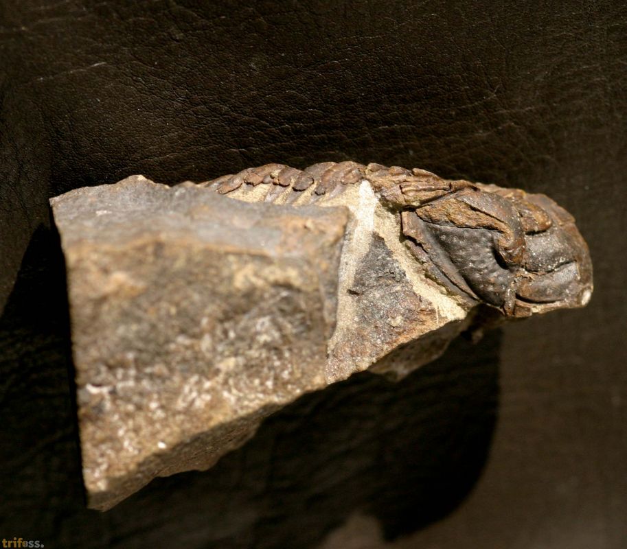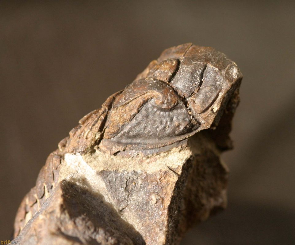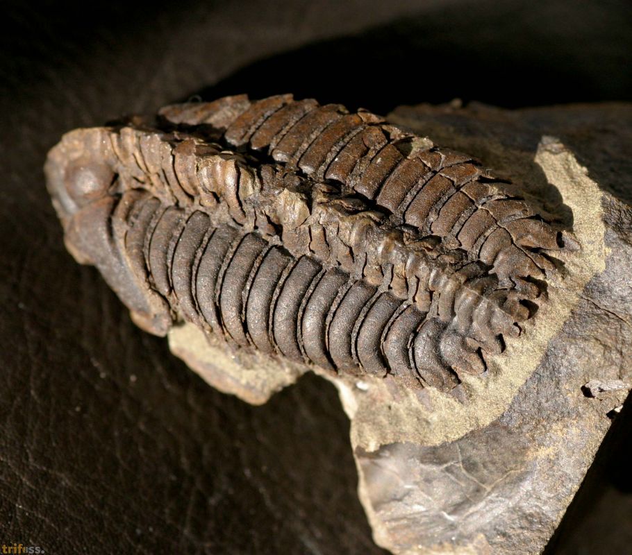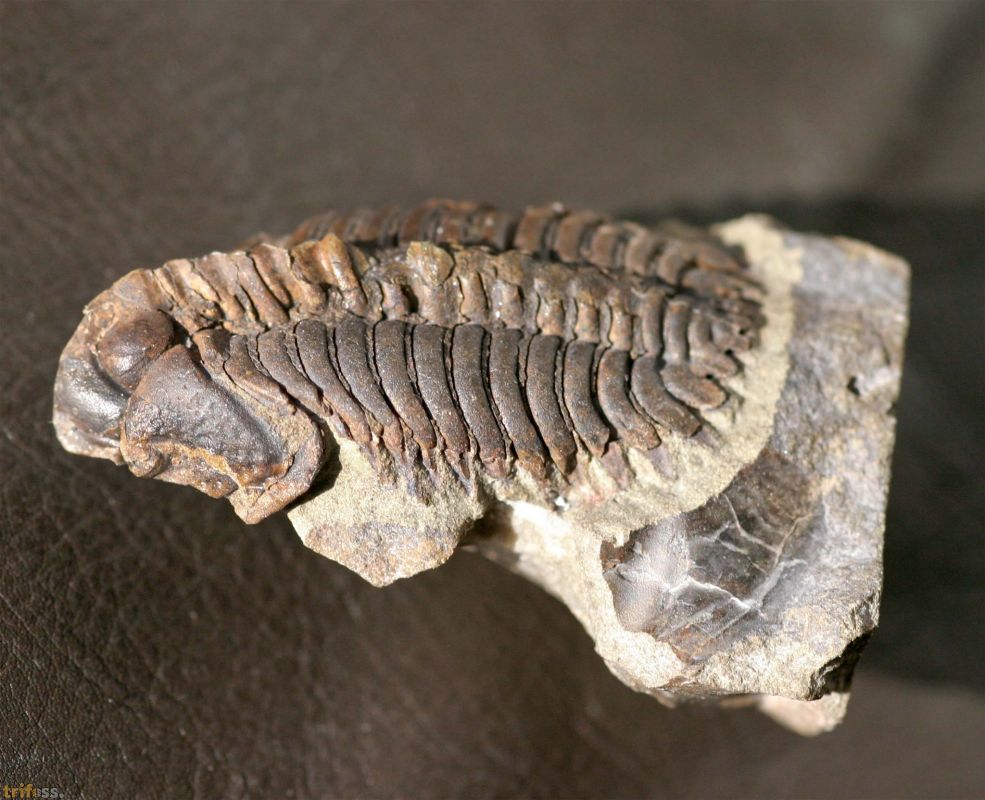 Hier ist ein guter und günstiger Beleg eines seltenen Pseudosphaerexochus octolobatus aus den berühmten Starfishbeds von Girvan. Bei diesem Trilobiten ist lateral eine stärkere, diagenetische Kompaktion zu verzeichnen.