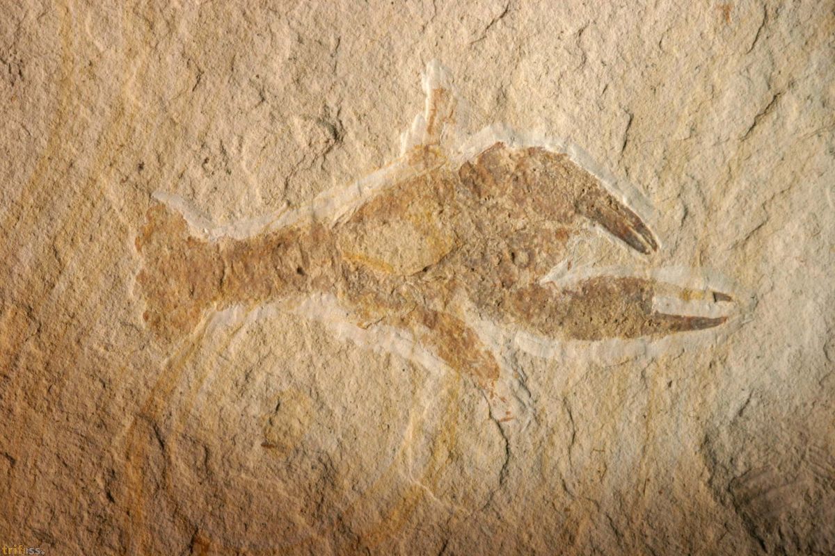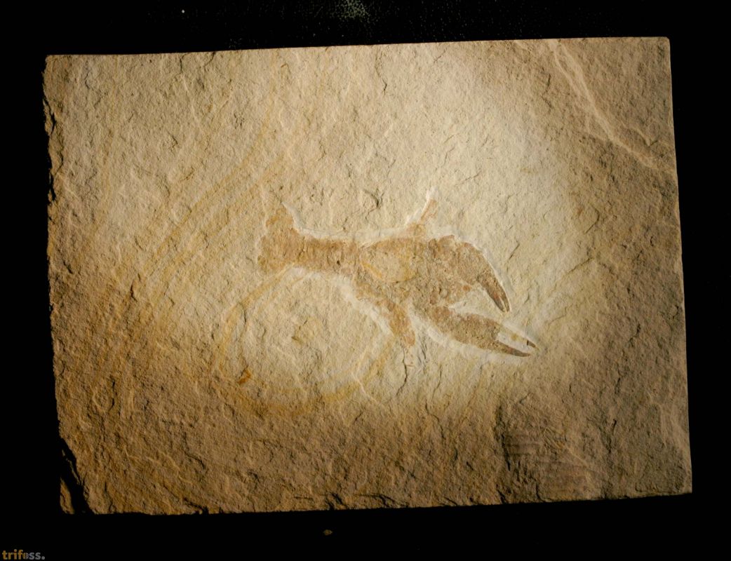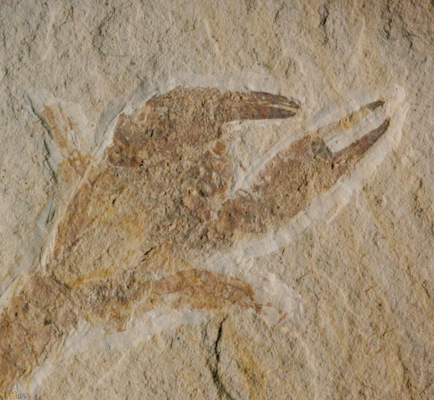 Dies ist ein Belegexemplar einer Eryma punctatum aus Painten. Der Krebs selber ist etwa 60 mm lang, was für eine Eryma punctatum aus Painten relativ klein ist. |