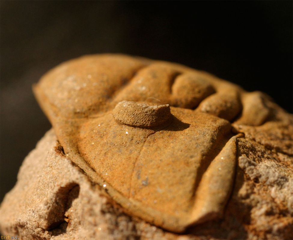 Hier ist ein schönes und detailreiches Cephalon von Dalmanitina socialis in einer hellen Färbung.