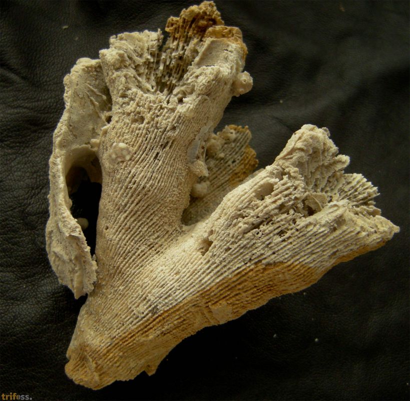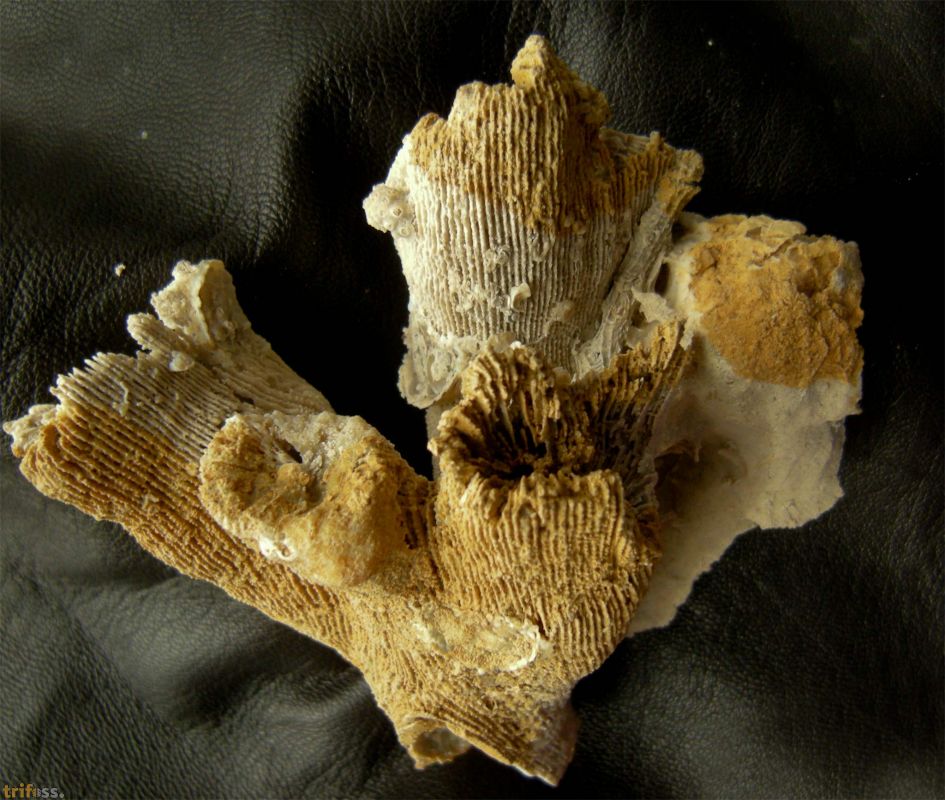 | Hier ist ein größerer, fossiler Korallenstock mit der Astkoralle Latiphyllia suevica aus dem Kimmeridge von Nattheim. | |||