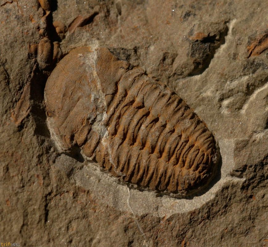 Hier ist ein Beleg eines Kingaspoides aus der Jbel Wawrmast - Foramtion von Marokko. Durch den Trilobiten verläuft eine etwas breitere Klebung. | |||