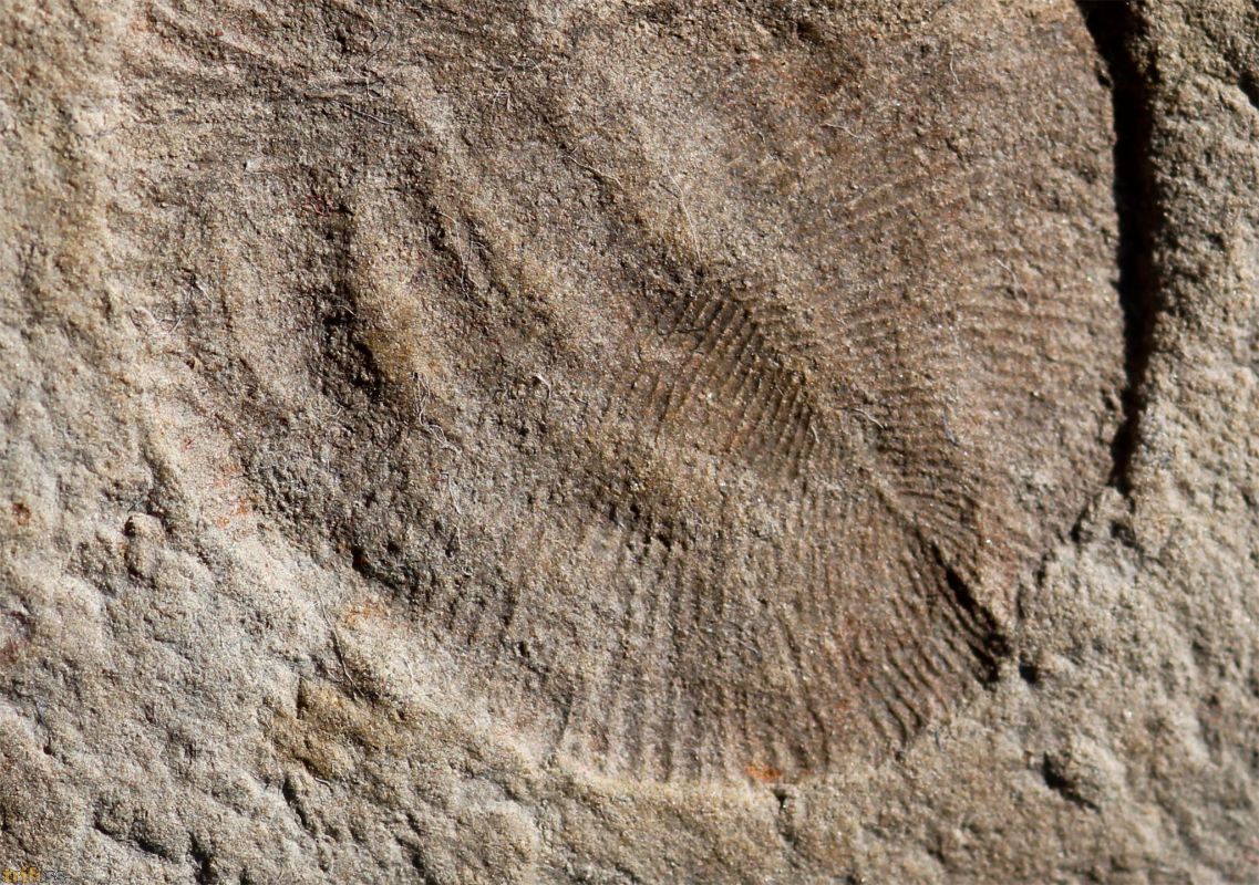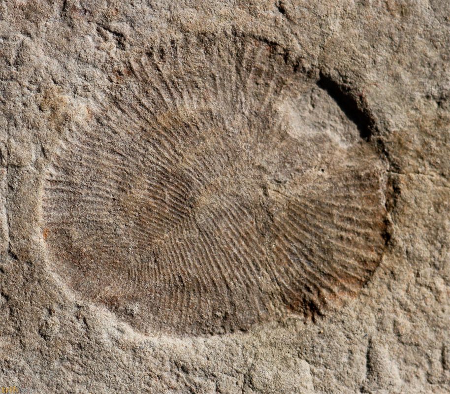 Dies ist ein schönes sowie großes Ediacara - Fauna - Fossil der Art Dickinsonia costata. Diese Dickinsonia costata bietet eine detailreiche Erhaltung und präsentiert sich gefällig auf der Platte, welche etwa 173 x 148 mm misst. Entlang der verlustarmen Klebung ist eine minimale Fehlstelle im Bereich des Fossils. Die systematische Stellung der Gattung Dickinsonia wird noch immer kontrovers diskutiert. Selbst eine Zugehörigkeit zum Reich der Pilze oder einem vollkommen unbekannten Reich wurde in Erwägung gezogen. Allgemein akzeptiert ist, dass es sich um eine Zuordnung zu den vielzelligen Tieren (Metazoa) handelt. Auch hier wird wieder deutlich, wie sehr sich die Ediacara - Fauna von den „modernen“ Lebewesen der Erde unterscheidet. | |||