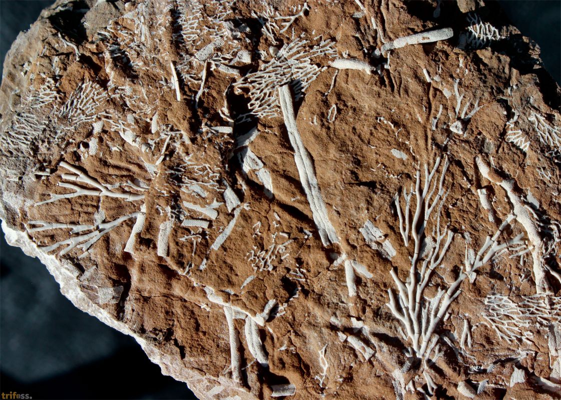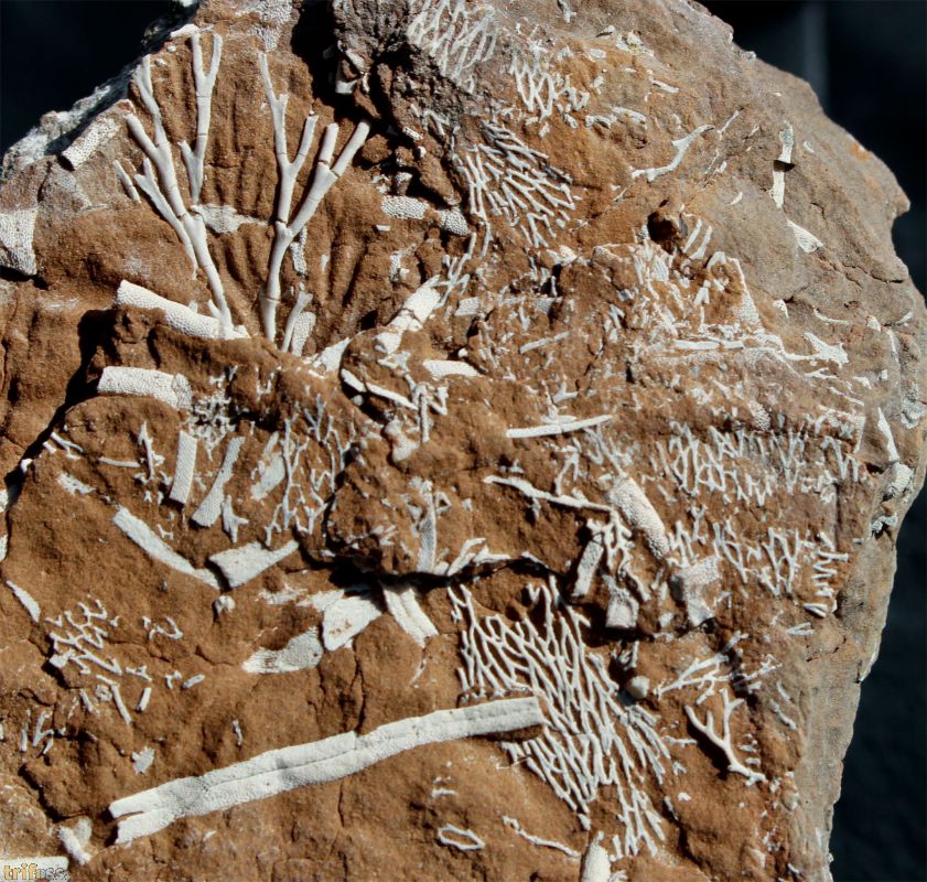 Dies ist eine schöne Bryozoen - Platte aus dem Kuckersit von Estland mit Chasmatopora furcata.
