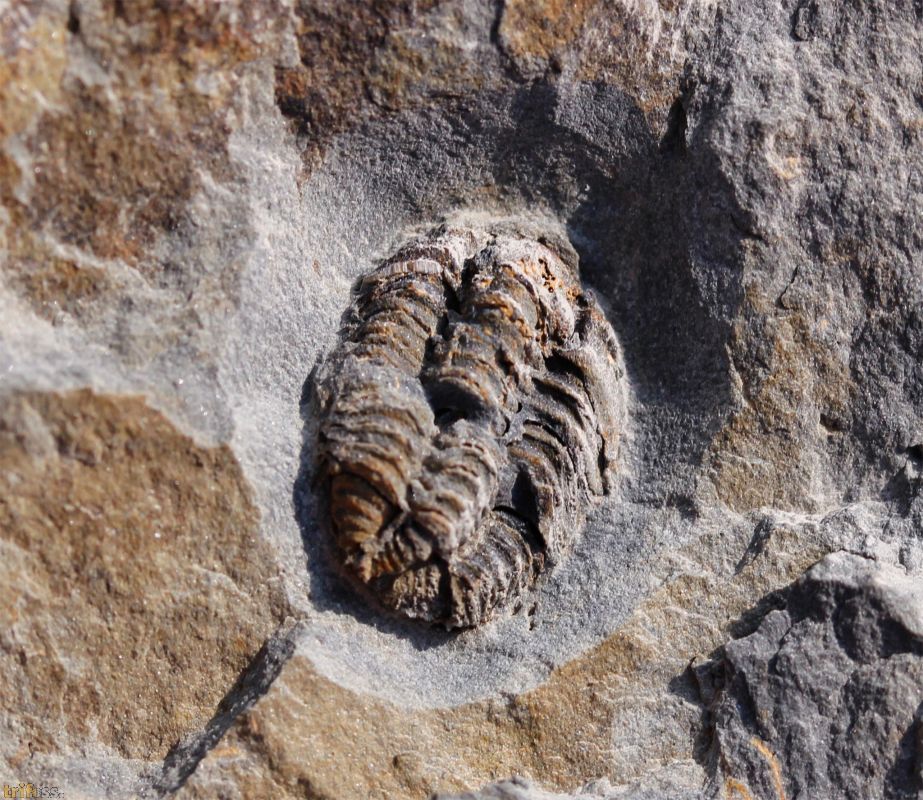 Hier ist ein preiswerter Beleg eines Trilobiten der Art Gravicalymene arcuata aus dem oberen Ordovizium von Nord Wales. | |||