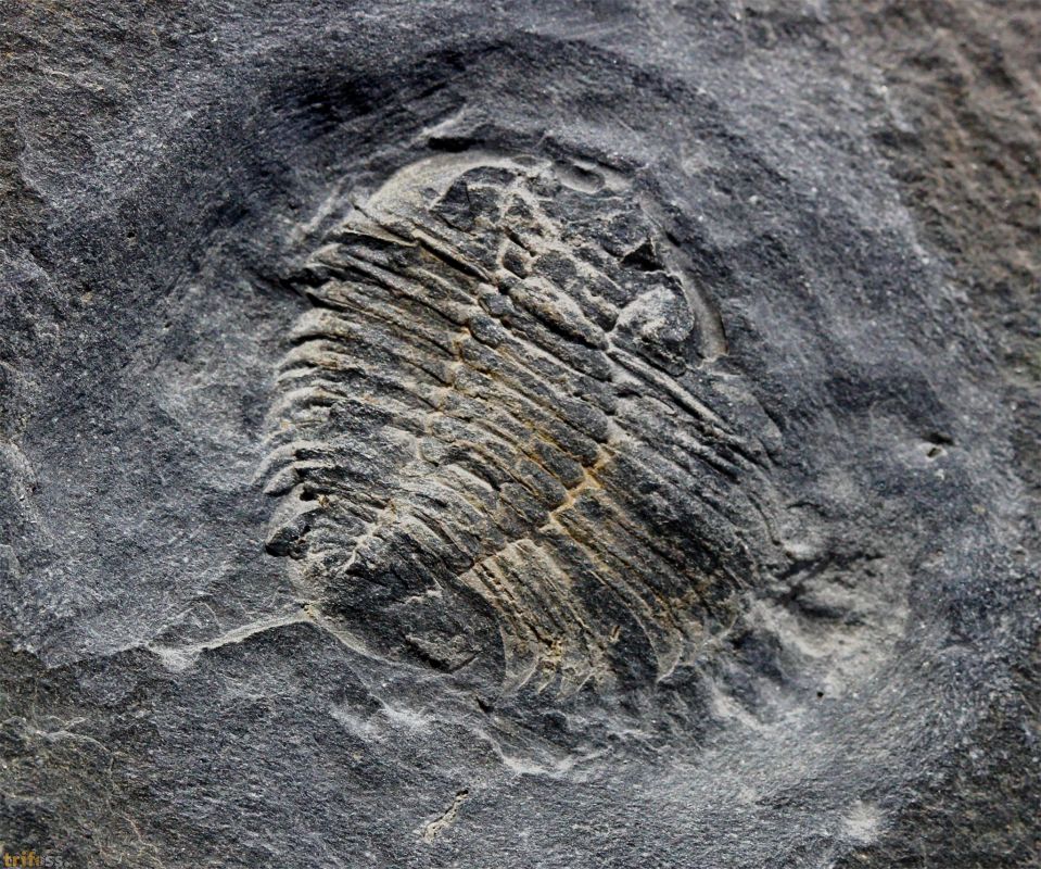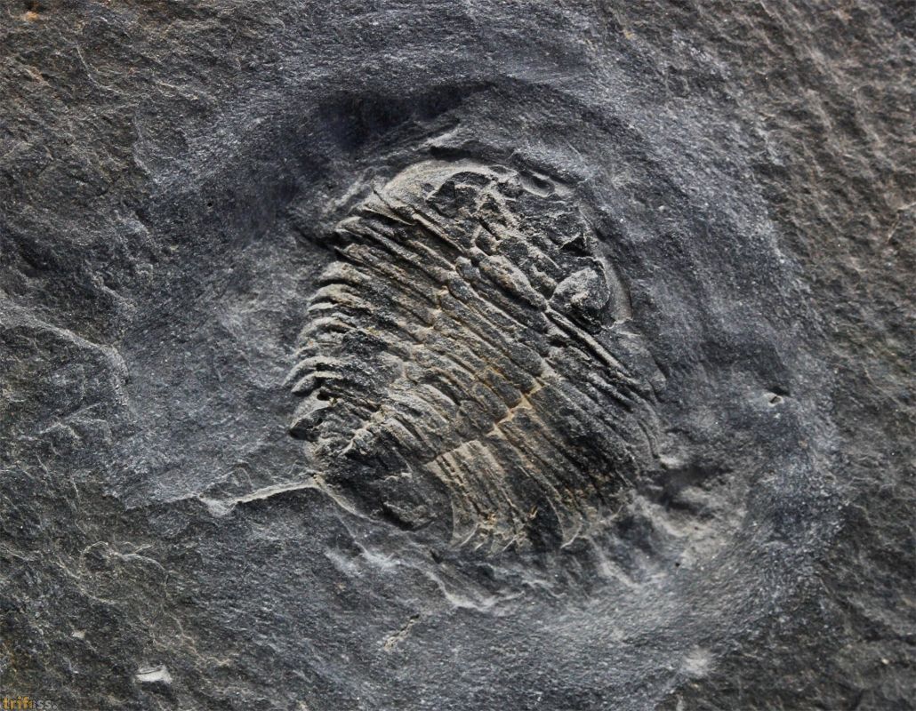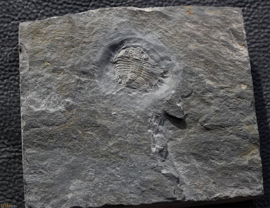 Hier ist ein preiswerter Beleg eines Valongo Trilobiten der Art Eodalmanitina destombesi mit Pygidialdron.