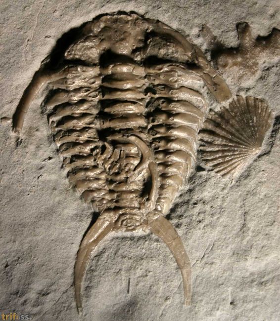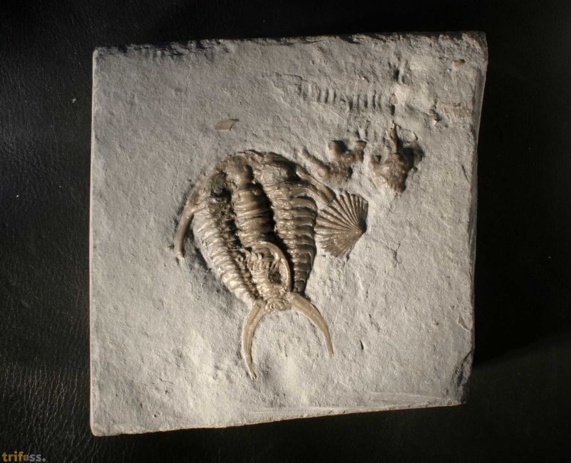 Schönes Exemplar dieses seltenen Trilobiten aus Kanada. Als Beifang kommt noch eine Brachipode dazu. An dem Stück ist nichts restauriert, was bei kanadichen Trilobiten nicht selbstverständlich ist. | |||