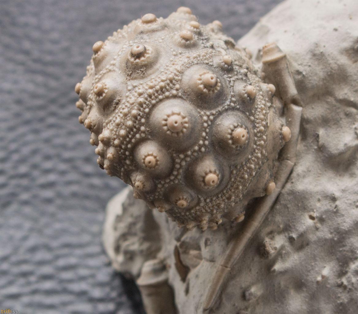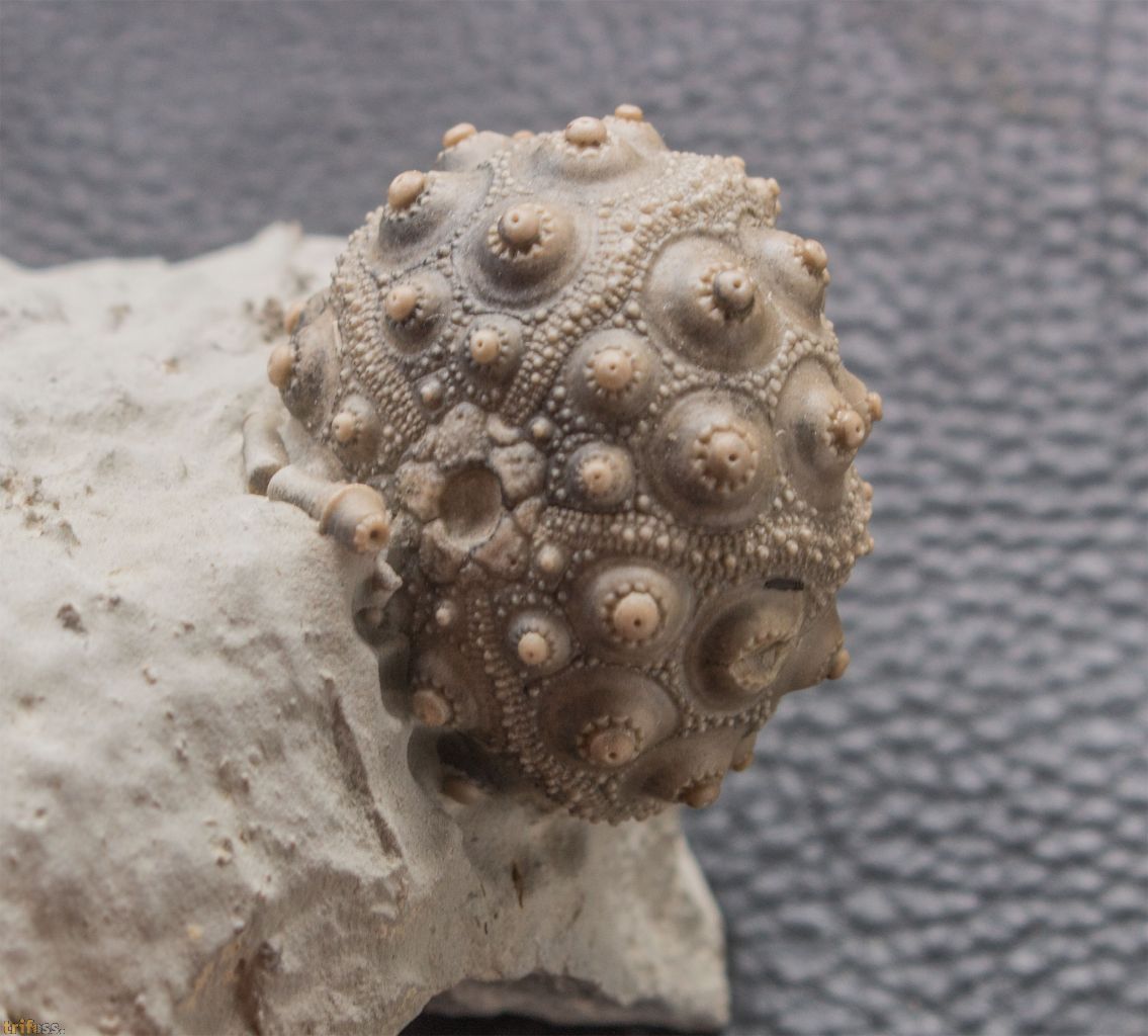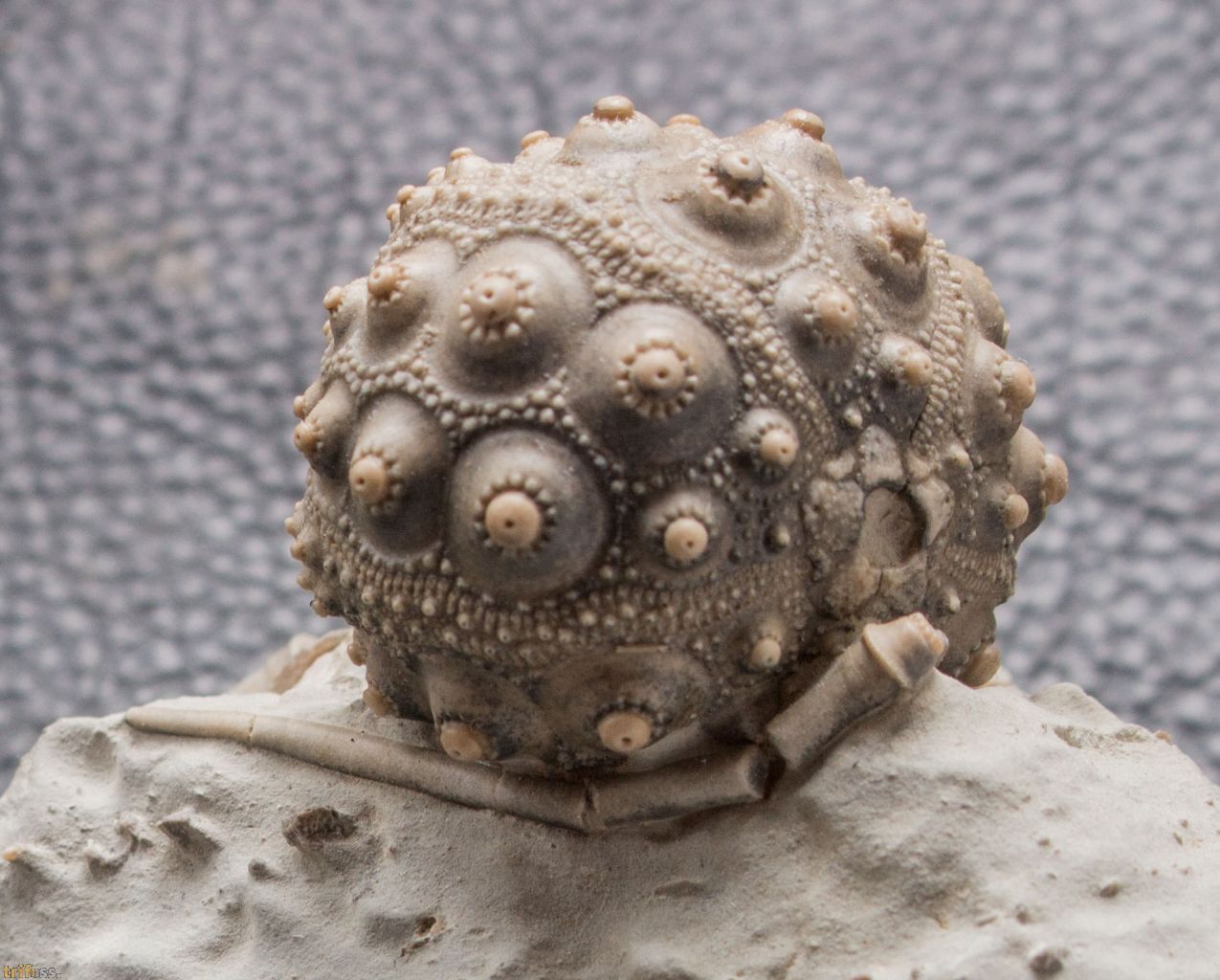 Hier ist ein fossiler Seeigel der Art Hemicidaris intermedia aus dem Schweizer - Jura. Das Exemplar zeigt eine äußerst schöne sowie detailreiche Erhaltung. Zudem ist auch noch ein Stachel zusammen mit dem fossilen Seeigel in der Matrix eingebettet. Dieser Hemicidaris intermedia (nur die Kapsel) selber misst etwa 32 mm. | |||