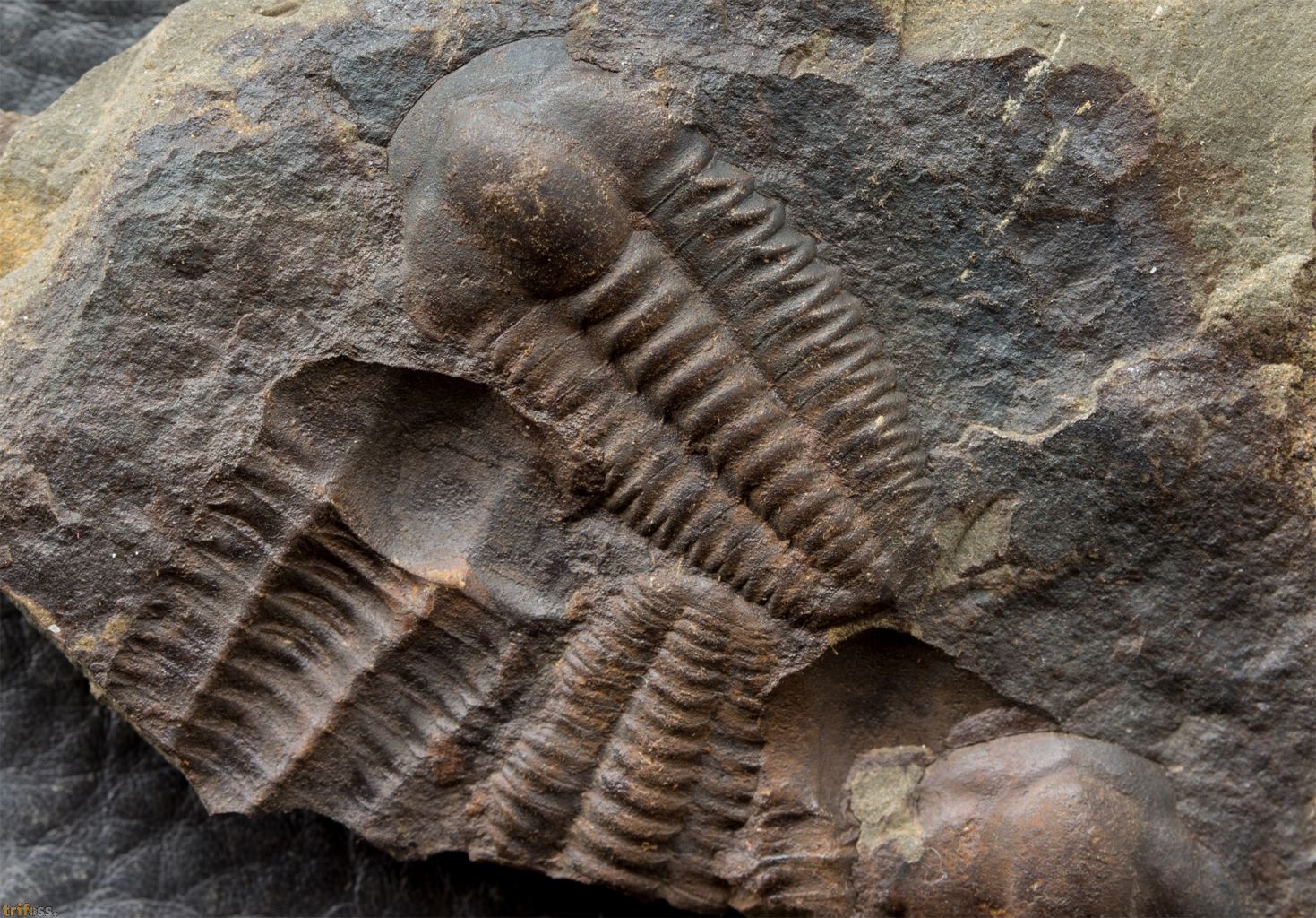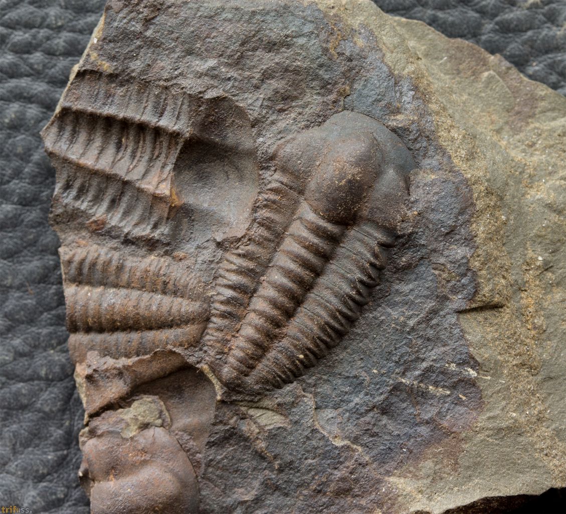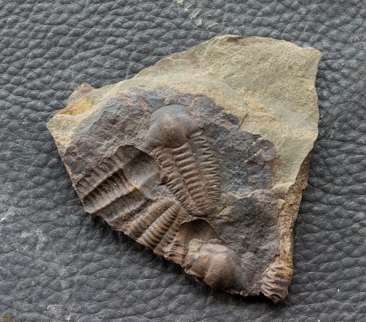 Hier ist eine dekorative Platte mit einem Trilobiten der Art Ellipsocephalus hoffi aus Jince. Dieser Trilobit misst etwa 23 mm in der Länge | |||