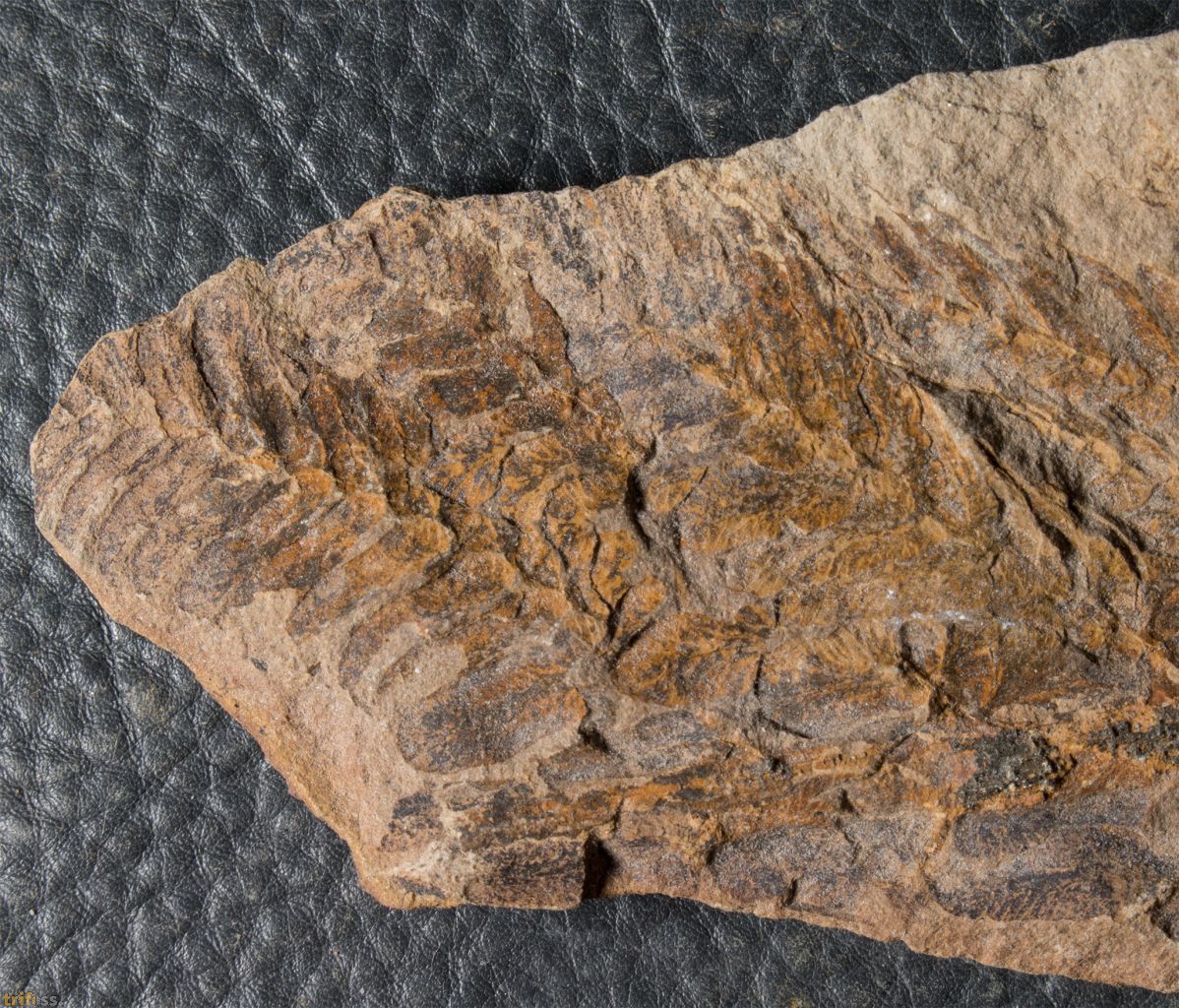 Dies ist eine Toneisenstein - Konkretion mit einem Zweig der Gattung Pecopteris sp von der klassichen Konservatlagerstätte von Mazon Creek. | |||
