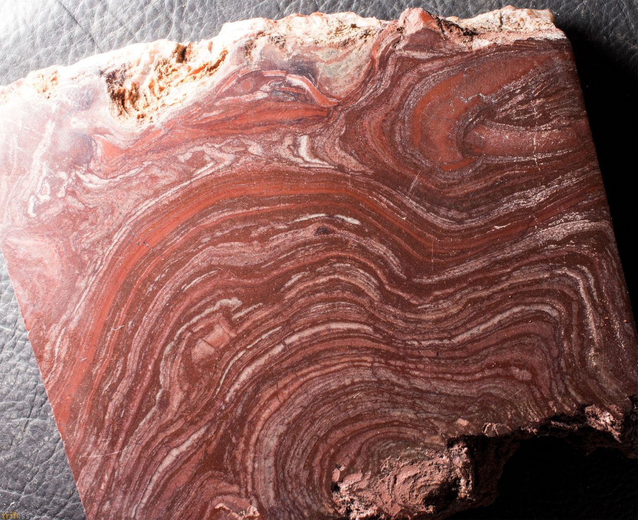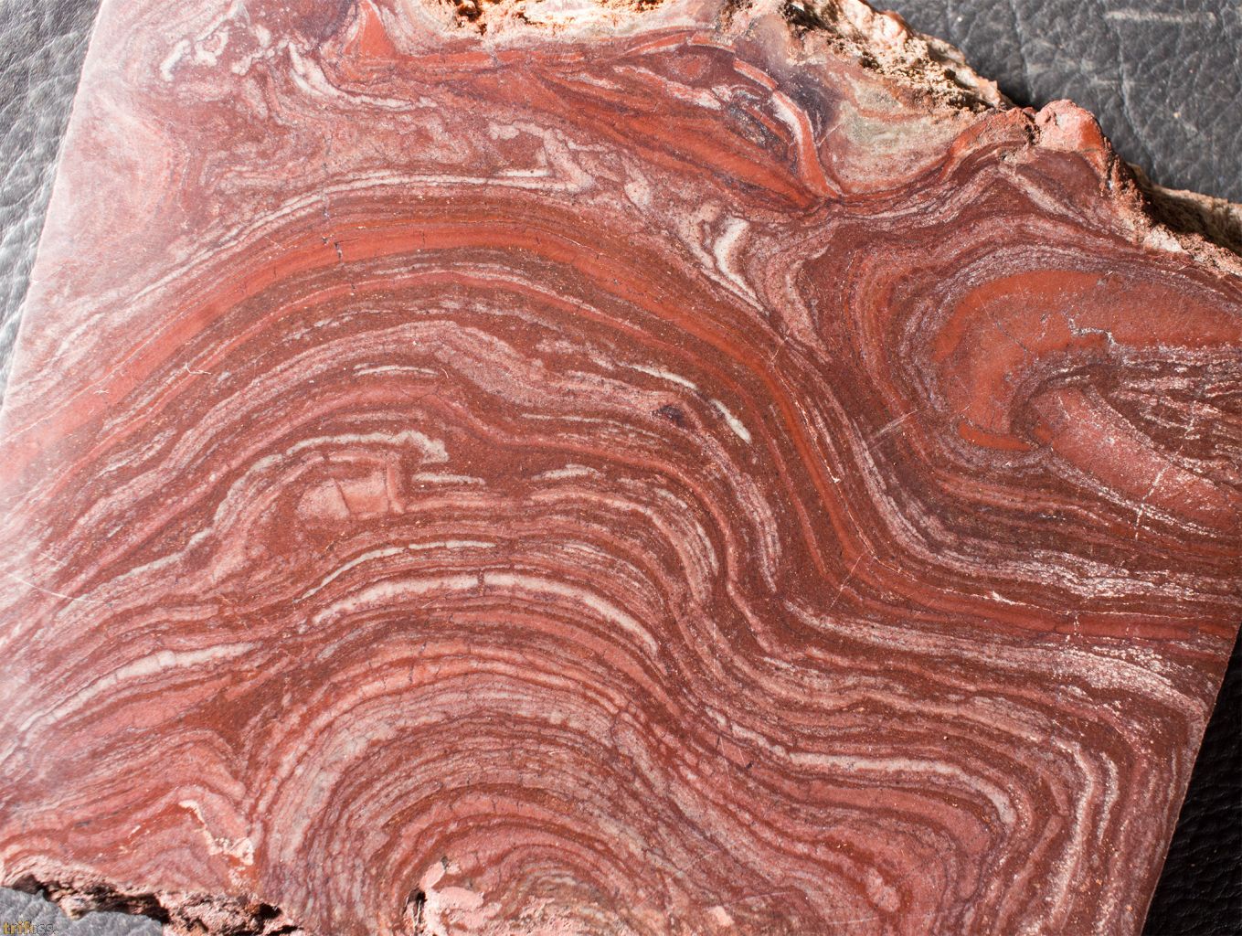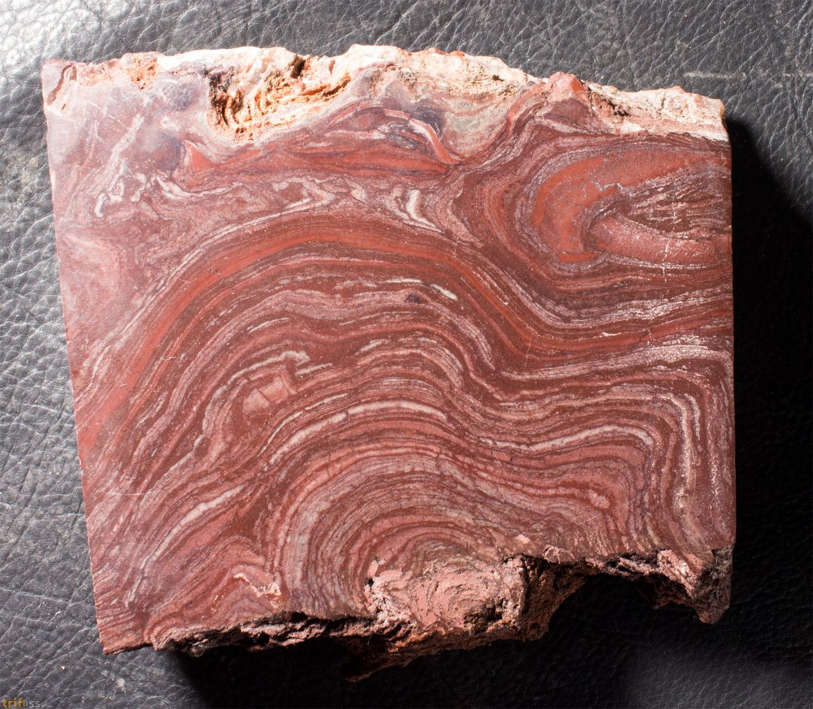 | Hier ist ein sehr schöner Anschliff eines Süsswasser - Stromatolithen der Art Conophyton amantourartensis aus dem Ediacarium von Marokko. Die stromatolithführenden Karbonatlagen der Ouarzazate - Supergruppe im Anti Atlas (Marokko) dokumentieren ein außergewöhnliches Beispiel für kontinentale Stromatolithbildung im späten Ediacarium. Die Becken, in denen sie entstanden, waren tektonisch kontrollierte Senken, die überwiegend durch Grundwasser gespeist wurden. Daneben kam es zu episodischen Abflüssen, die nach Regenereignissen oder durch die Erosion frischer vulkanischer Aschen entstanden. Diese kurzzeitigen Rinnsale transportierten feinklastisches Material in die Senken, ohne dass sich größere Flusssysteme etablierten. Durch den Eintrag vulkanischer Aschen waren die Seen alkalisch und reich an Silizium, was die mikrobielle Karbonatfällung begünstigte (Thomas et al. 2002). Die Stromatolithen selbst zeigen eine bemerkenswerte morphologische Vielfalt: von kuppelförmigen (domalen) über säulenförmige Strukturen bis hin zu Onkoiden. Diese Formen deuten auf flache, ruhige, aber episodisch bewegte Gewässer hin. Umlagerte Stromatolithbruchstücke finden sich in sogenannten Doloruditen also grobkörnigen Dolomittrümmergesteinen, die durch Wellen oder Sturmereignisse entstanden und die mikrobiellen Matten zerstörten und redeponierten (Thomas et al. 2002). Ein weiteres Charakteristikum ist der Wechsel von Wachstums- und Austrocknungsphasen. Stromatolithlagen alternieren mit Dolostonen, die durch Prismenrisse gekennzeichnet sind – ein Hinweis auf wiederholtes Trockenfallen der Seen. Damit spiegeln die Stromatolithen ein semi arides Klima mit episodischen Feuchtphasen wider (Ennih & Liégeois 2008). Besonders hervorzuheben ist, dass diese Stromatolithen zu den am besten datierten kontinentalen Stromatolithen des Ediacariums gehören. Ihre zeitliche Einordnung erfolgt zweifach: Zum ersten über chemostratigraphische Marker, charakteristische d¹³C Anomalien, die weltweit als Korrelationselemente dienen und die Grenze Neoproterozoikum/Kambrium in der Adoudou Formation markieren (Maloof et al. 2010), Sowie zum zweiten über radiometrische U Pb Datierungen an Zirkonen aus den vulkanischen Tuffen und Bentoniten, die Alter im Bereich von ca. 580–560 Mio. Jahren ergeben (Thomas et al. 2002). Paläogeographisch lagen die Becken der Ouarzazate Supergruppe am Nordrand des Westafrikanischen Kratons, eingebettet in den tropisch bis subtropischen Gürtel von West Gondwana. Die Kombination aus semi aridem Klima, vulkanisch geprägter Alkalinität und episodischen Binnengewässern macht diese Stromatolithen zu einem einzigartigen Zeugnis der Umweltbedingungen unmittelbar vor dem Beginn des Kambriums. Álvaro, J.J., et al. (2010): The Ediacaran–Cambrian transition in Morocco. Precambrian Research 179, 22–36. Ennih, N. & Liégeois, J.P. (2008): The Anti Atlas of Morocco: its Proterozoic and Pan African evolution. Geological Society, London, Special Publications 297, 1–17. Maloof, A.C., et al. (2010): The earliest Cambrian record of animals and ocean geochemical change. Geological Society of America Bulletin 122, 1731–1774. Raaben, M. E. (1980). Some stromatolites of the Precambrian of Morocco. Earth-Science Reviews, 16(1): 221–234, 5 figures, 3 plates. Thomas, R.J., et al. (2002): Precambrian evolution of the Anti Atlas belt, Morocco. Precambrian Research 118, 1–57. | |||
