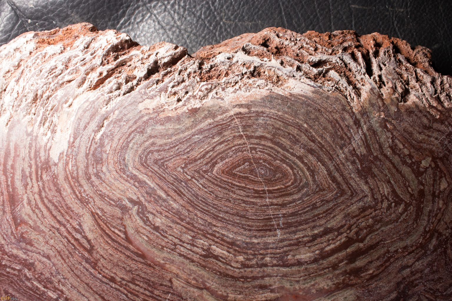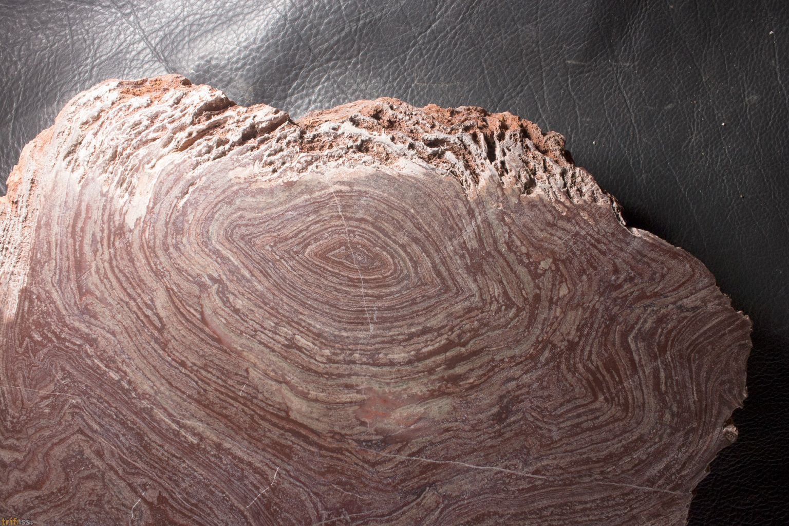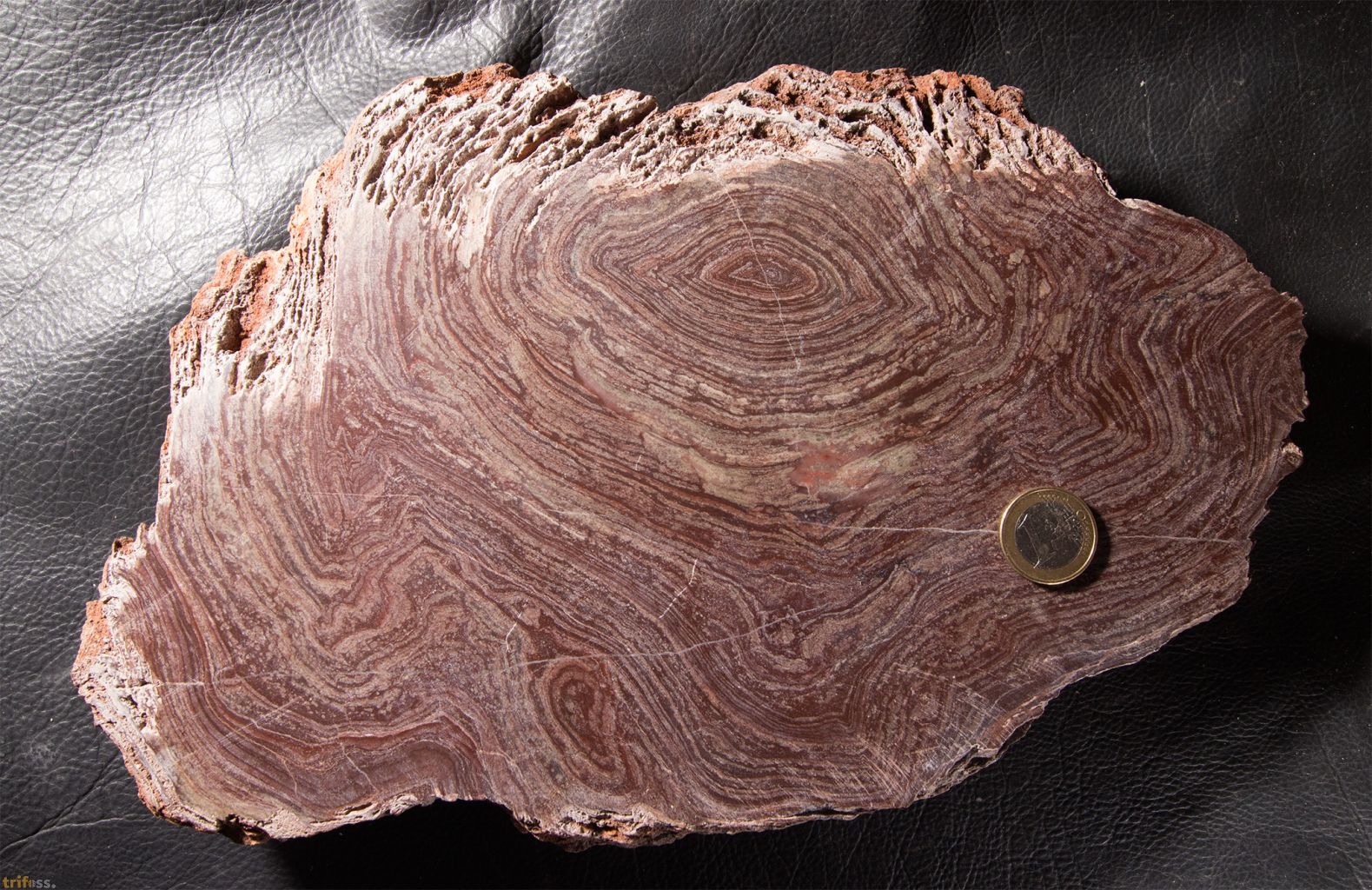 | Hier ist ein schöner sowie großer Stromatolith der Art Conophyton amantourartensis aus dem Ediacarium von Marokko. Die stromatolithführenden Karbonatlagen der Ouarzazate Supergruppe im Anti Atlas (Marokko) dokumentieren ein außergewöhnliches Beispiel für kontinentale Stromatolithbildung im späten Ediacarium. Die Becken, in denen sie entstanden, waren tektonisch kontrollierte Senken, die überwiegend durch Grundwasser gespeist wurden. Daneben kam es zu episodischen Abflüssen, die nach Regenereignissen oder durch die Erosion frischer vulkanischer Aschen entstanden. Diese kurzzeitigen Rinnsale transportierten feinklastisches Material in die Senken, ohne dass sich größere Flusssysteme etablierten. Durch den Eintrag vulkanischer Aschen waren die Seen alkalisch und reich an Silizium, was die mikrobielle Karbonatfällung begünstigte (Thomas et al. 2002). Die Stromatolithen selbst zeigen eine bemerkenswerte morphologische Vielfalt: von kuppelförmigen (domalen) über säulenförmige Strukturen bis hin zu Onkoiden. Diese Formen deuten auf flache, ruhige, aber episodisch bewegte Gewässer hin. Umlagerte Stromatolithbruchstücke finden sich in sogenannten Doloruditen also grobkörnigen Dolomittrümmergesteinen, die durch Wellen oder Sturmereignisse entstanden und die mikrobiellen Matten zerstörten und redeponierten (Thomas et al. 2002). Ein weiteres Charakteristikum ist der Wechsel von Wachstums- und Austrocknungsphasen. Stromatolithlagen alternieren mit Dolostonen, die durch Prismenrisse gekennzeichnet sind – ein Hinweis auf wiederholtes Trockenfallen der Seen. Damit spiegeln die Stromatolithen ein semi arides Klima mit episodischen Feuchtphasen wider (Ennih & Liégeois 2008). Besonders hervorzuheben ist, dass diese Stromatolithen zu den am besten datierten kontinentalen Stromatolithen des Ediacariums gehören. Ihre zeitliche Einordnung erfolgt zweifach: Zum ersten über chemostratigraphische Marker, charakteristische d¹³C Anomalien, die weltweit als Korrelationselemente dienen und die Grenze Neoproterozoikum/Kambrium in der Adoudou Formation markieren (Maloof et al. 2010), Sowie zum zweiten über radiometrische U Pb Datierungen an Zirkonen aus den vulkanischen Tuffen und Bentoniten, die Alter im Bereich von ca. 580–560 Mio. Jahren ergeben (Thomas et al. 2002). Paläogeographisch lagen die Becken der Ouarzazate Supergruppe am Nordrand des Westafrikanischen Kratons, eingebettet in den tropisch bis subtropischen Gürtel von West Gondwana. Die Kombination aus semi aridem Klima, vulkanisch geprägter Alkalinität und episodischen Binnengewässern macht diese Stromatolithen zu einem einzigartigen Zeugnis der Umweltbedingungen unmittelbar vor dem Beginn des Kambriums. Álvaro, J.J., et al. (2010): The Ediacaran–Cambrian transition in Morocco. Precambrian Research 179, 22–36. Ennih, N. & Liégeois, J.P. (2008): The Anti Atlas of Morocco: its Proterozoic and Pan African evolution. Geological Society, London, Special Publications 297, 1–17. Maloof, A.C., et al. (2010): The earliest Cambrian record of animals and ocean geochemical change. Geological Society of America Bulletin 122, 1731–1774. Raaben, M. E. (1980). Some stromatolites of the Precambrian of Morocco. Earth-Science Reviews, 16(1): 221–234, 5 figures, 3 plates. Thomas, R.J., et al. (2002): Precambrian evolution of the Anti Atlas belt, Morocco. Precambrian Research 118, 1–57. | |||