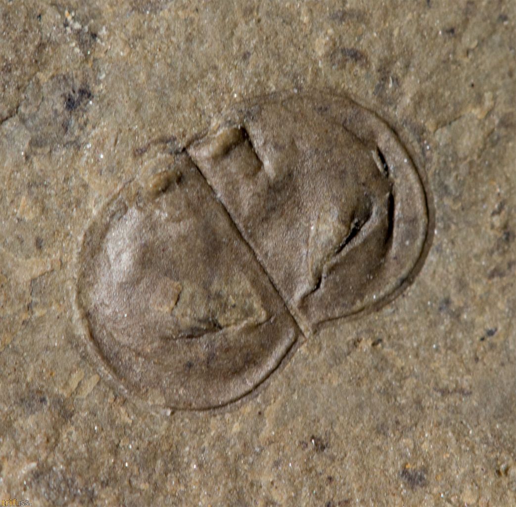Hier ist ein deteilreicher Weichkörper - Arthropode der Art Kunmingella douvillei aus Chengjiang in einer schönen Erhaltung. Die Kunmingella douvillei ist etwa 5 mm breit. | |||