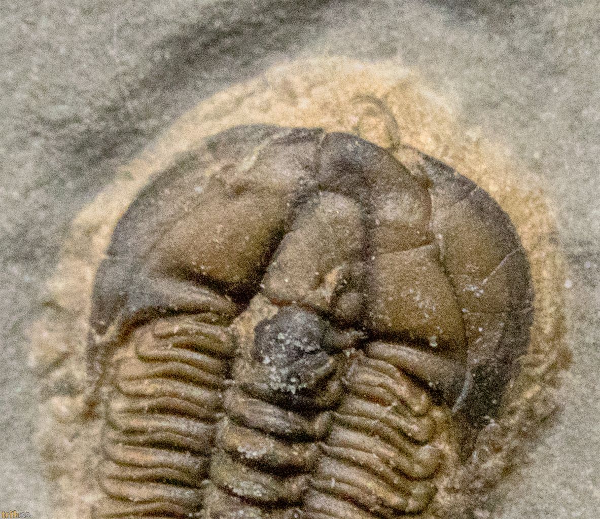 Bei diesem Utah Trilobiten handelt es sich um sehr ein detailreiches Exemplar der realtiv seltenen Art Brachyaspidion microps. Der Trilobit selber misst etwa 7 mm in der Länge.